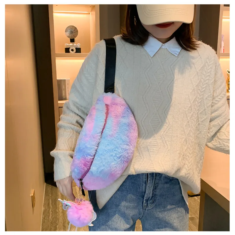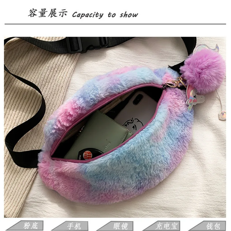 Новинка 2020, сумка на талию с единорогом для женщин, модная плюшевая Милая поясная сумка для девочек, сумки на ремне, Детские поясные сумки, мультяшный телефон