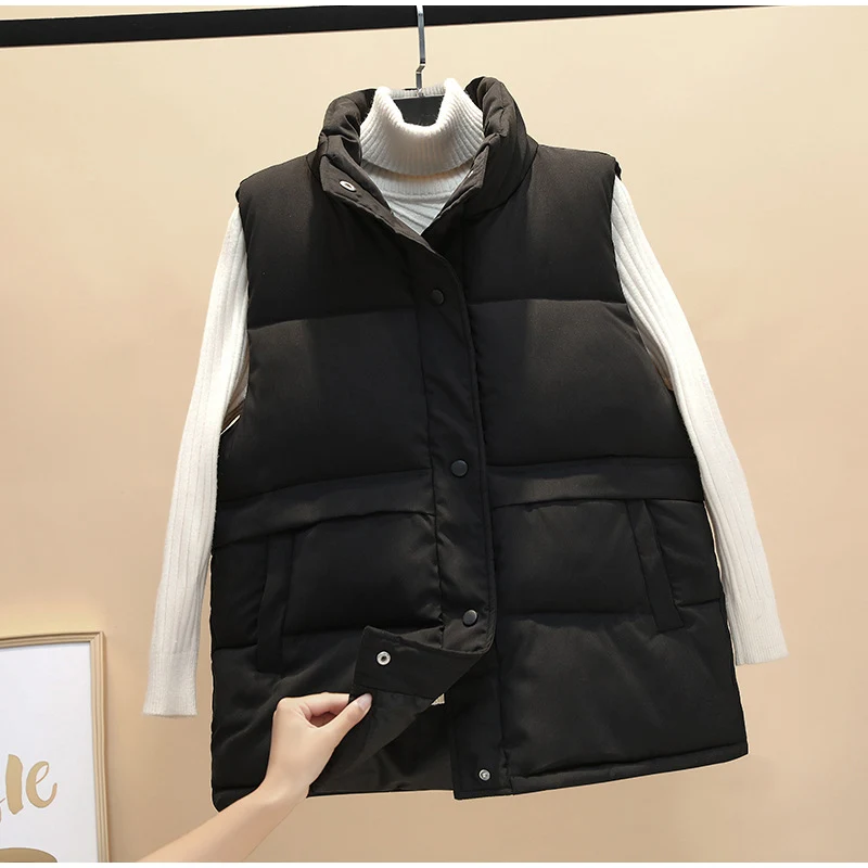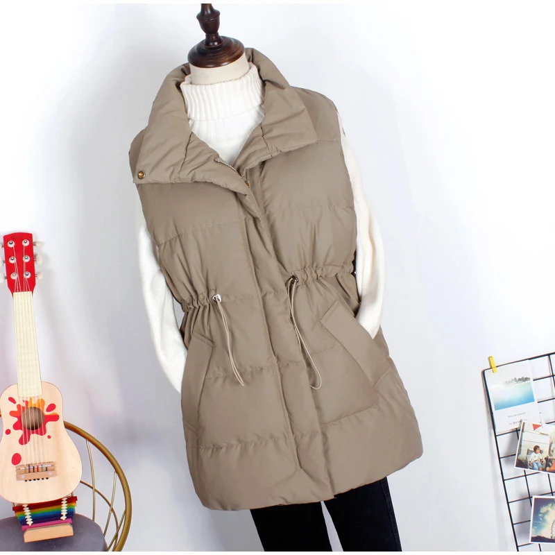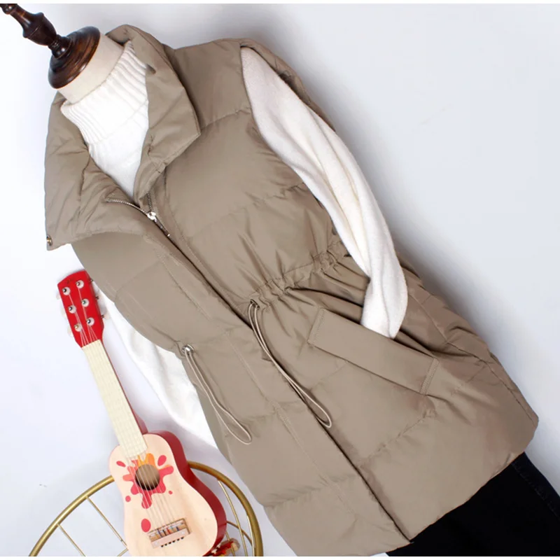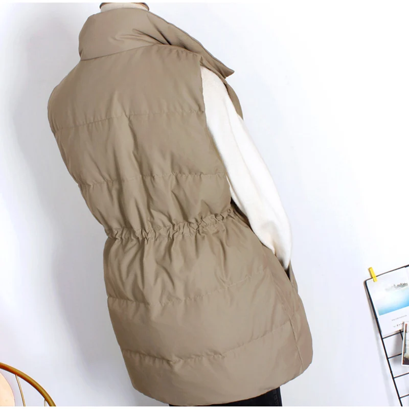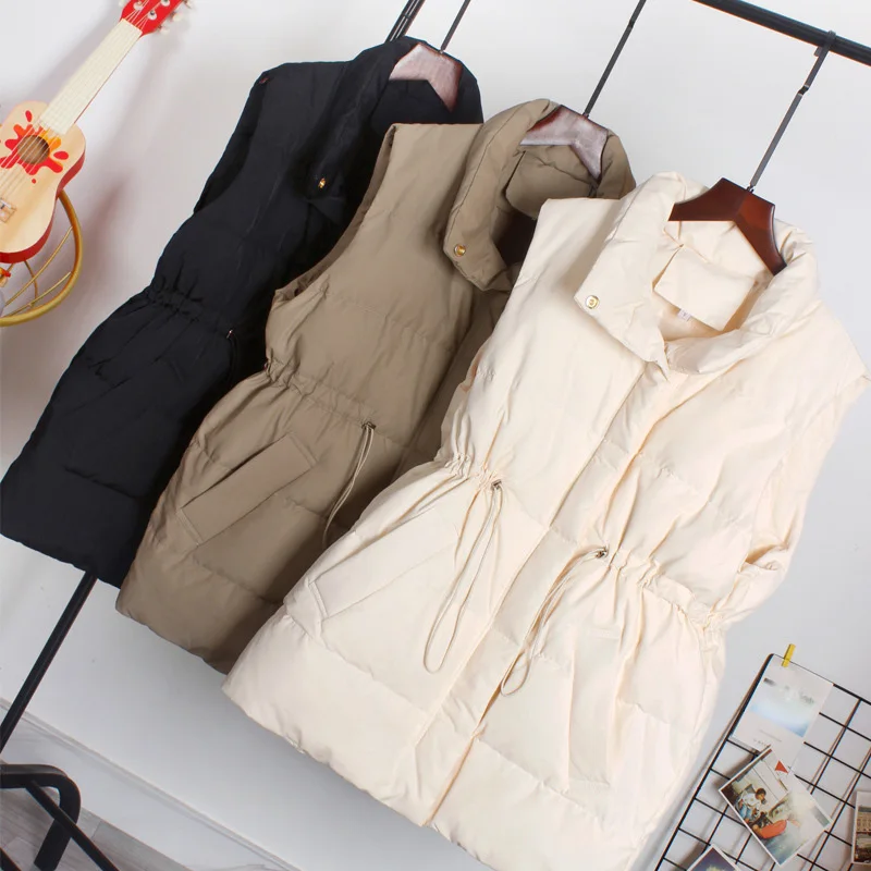 Женский зимний жилет на белом утином пуху, теплый длинный жилет на молнии с воротником-стойкой и карманами, Корейская уличная одежда, 2021