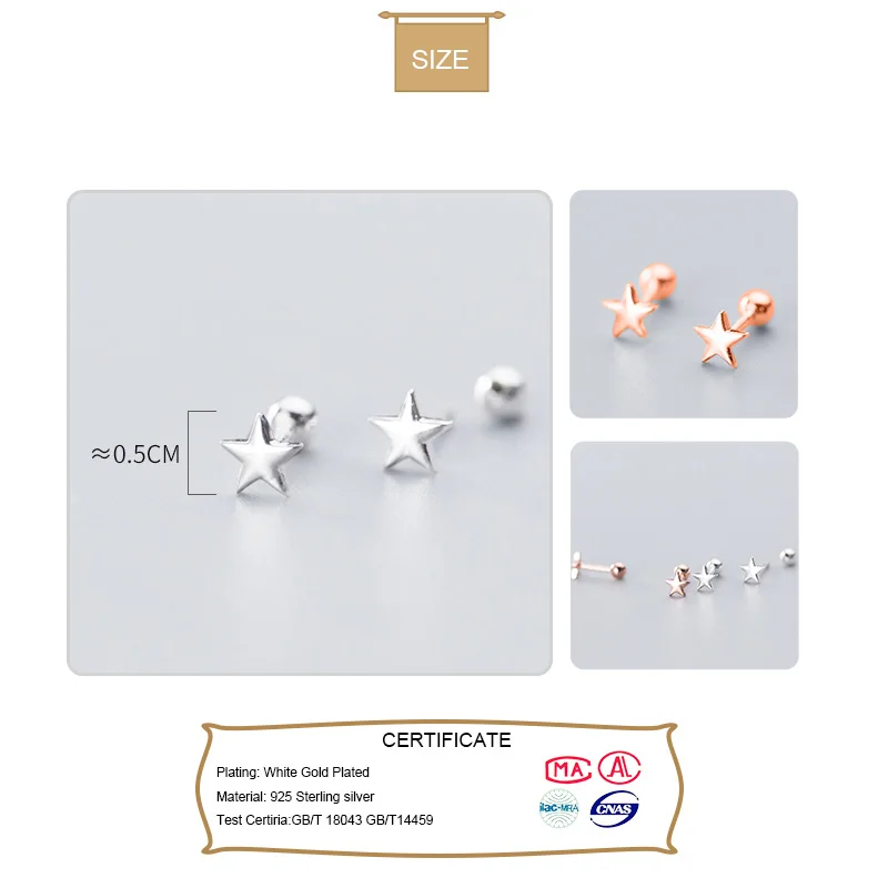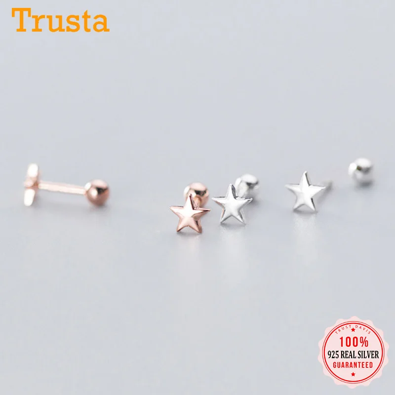 Женские серьги-гвоздики со звездами trustdave, мини-минималистичные серьги из настоящего серебра 925 пробы с винтовой звездой, DA1909