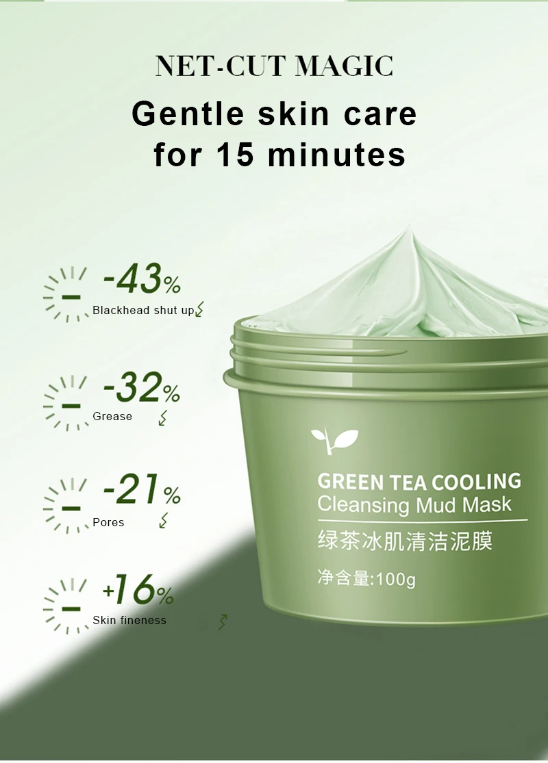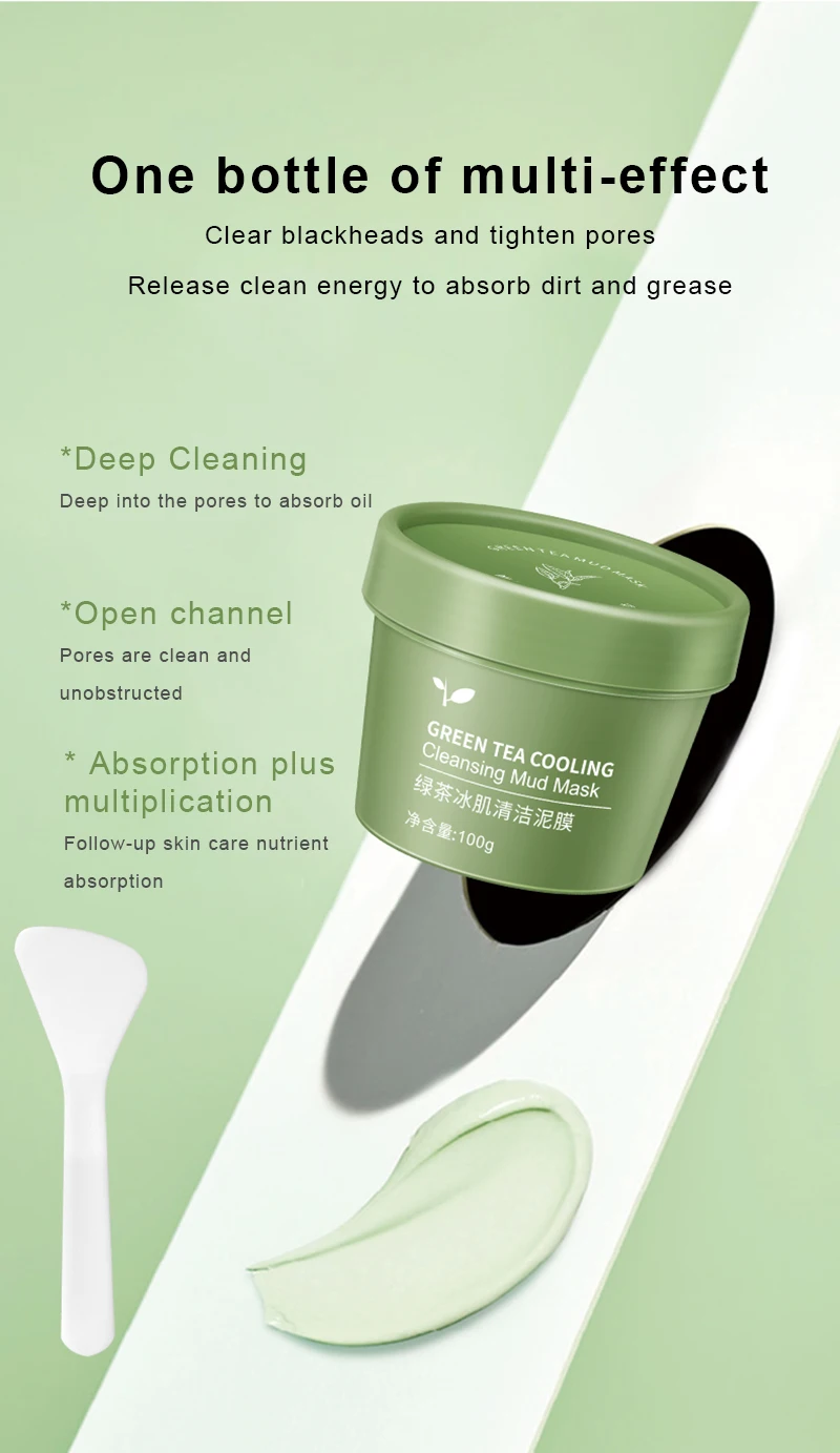 100 г зеленая чайная охлаждающая Очищающая грязевая маска увлажняющая питательная маска для глубокой очистки лица удаление черных точек лечение акне TSLM1