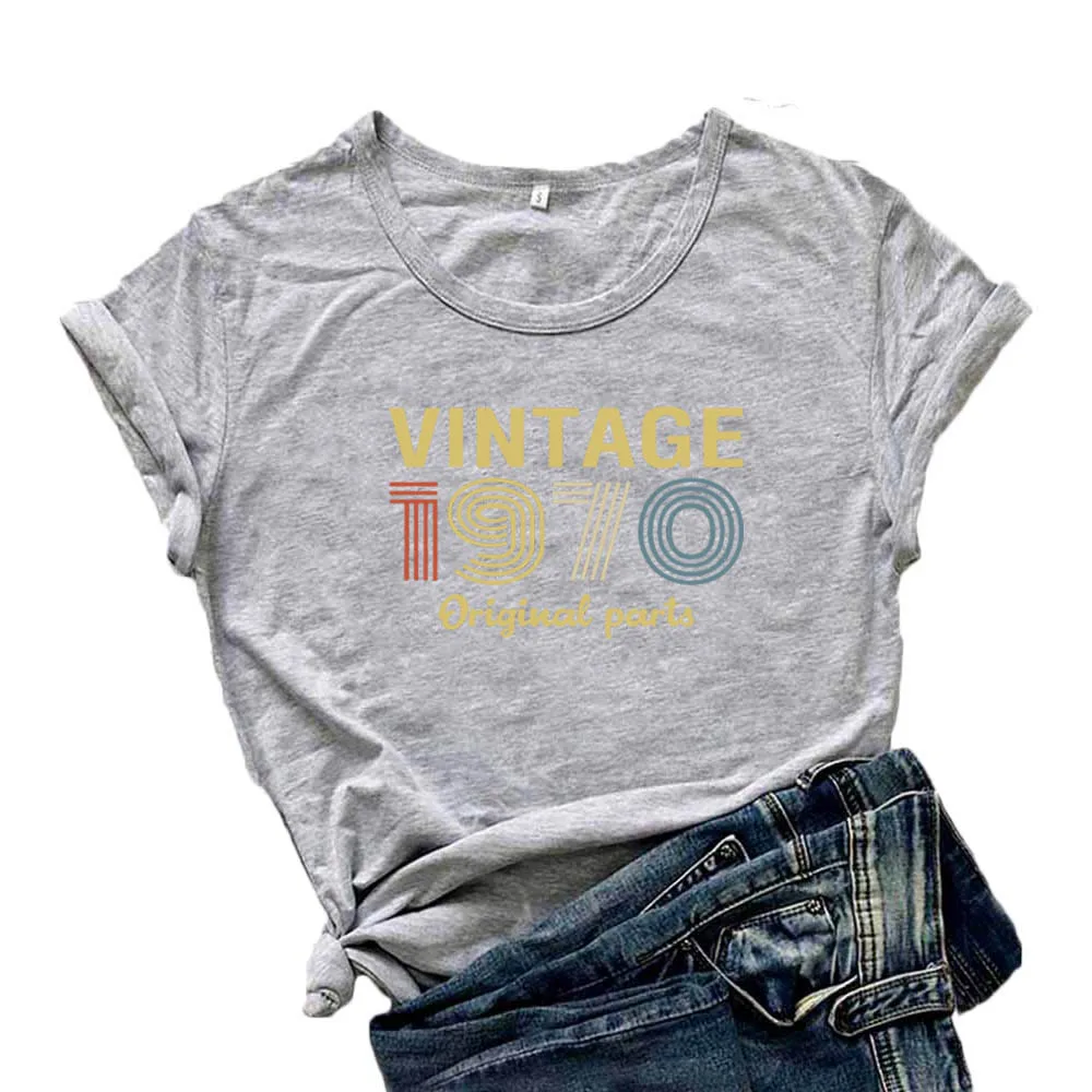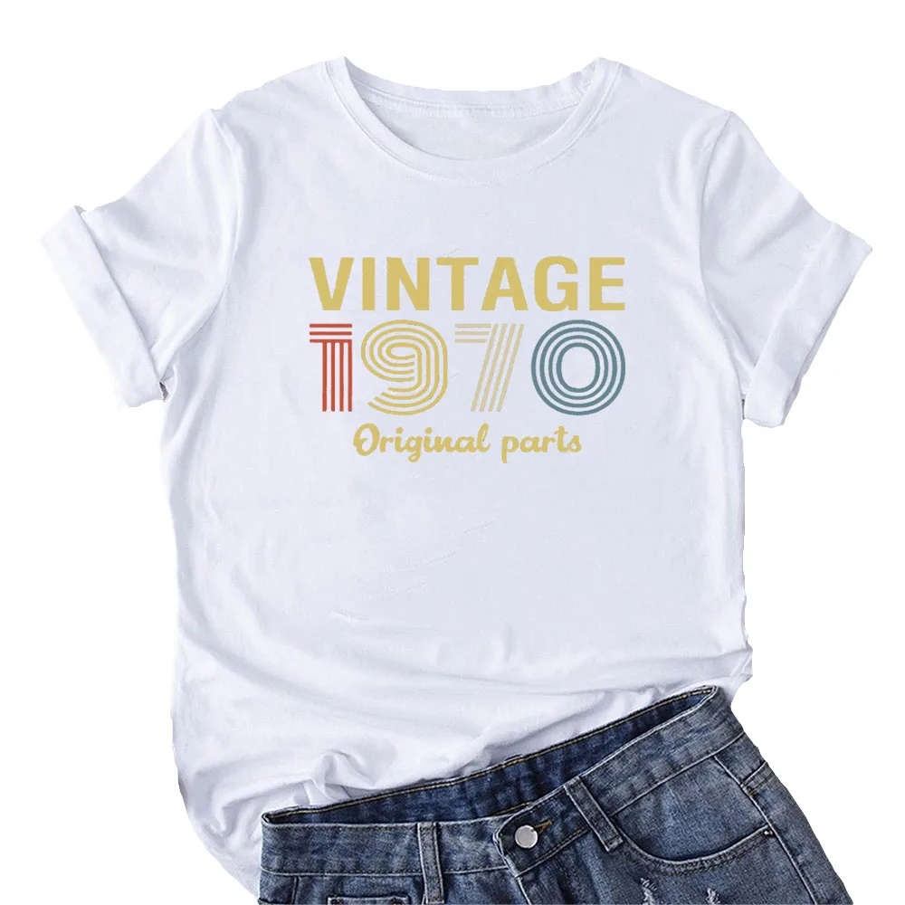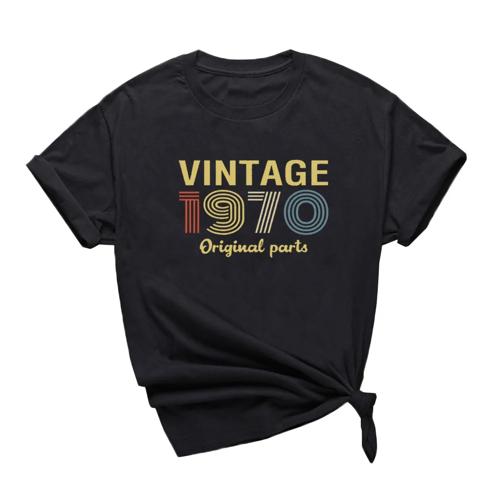 Винтажная футболка с оригинальными частями 1970, женская футболка с 50-летним подарком на день рождения, Женская хлопчатобумажная рубашка, черная футболка с графическим рисунком на день рождения, Camisetas Mujer