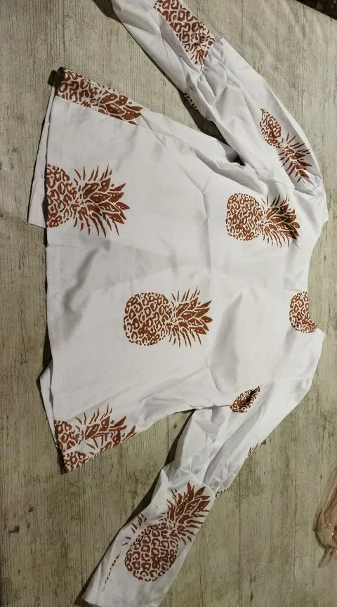 Такая классная блузка!!!☺️ Я тут после одного дурацкого платья, которое получила от другого продавца здесь, хотела уже удалить приложение. Но эта блузка так сильно обрадовала, что оставила пока приложение☺️ все прям соответствует, и размер, и форма, и даже пуговки. Спасибо за отличную работу!