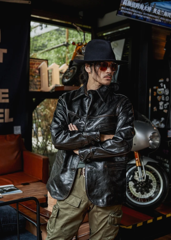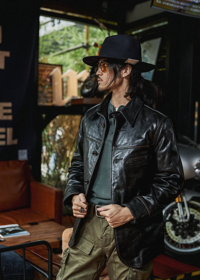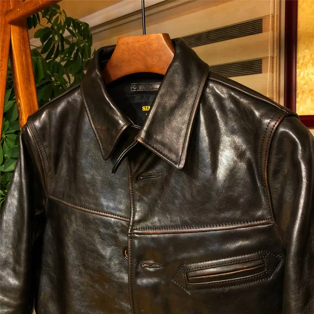 YR! Бесплатная доставка. Черная куртка из конской шкуры, Классическая винтажная кожаная одежда скобы. Мужское тонкое пальто из натуральной кожи.