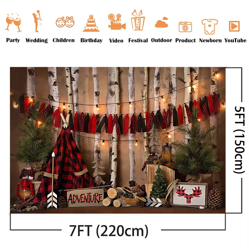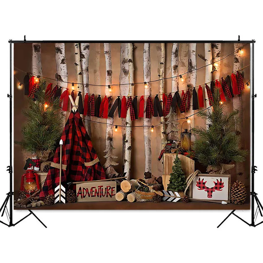 Фон для фотосъемки новорожденных с изображением приключений зимы Рождества фон для фотосъемки Красная клетка буйвола деревенский лагерь