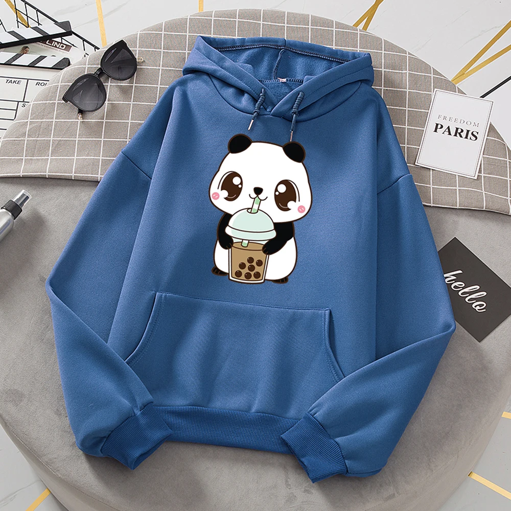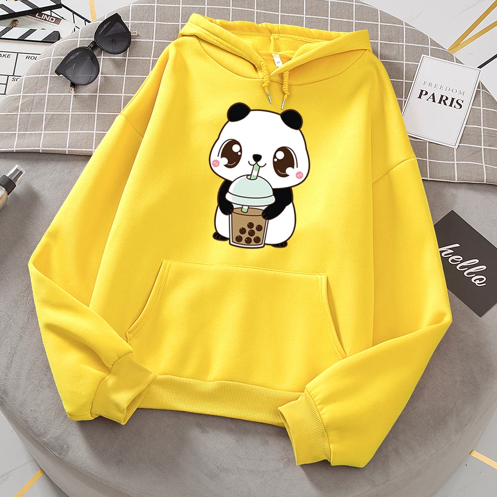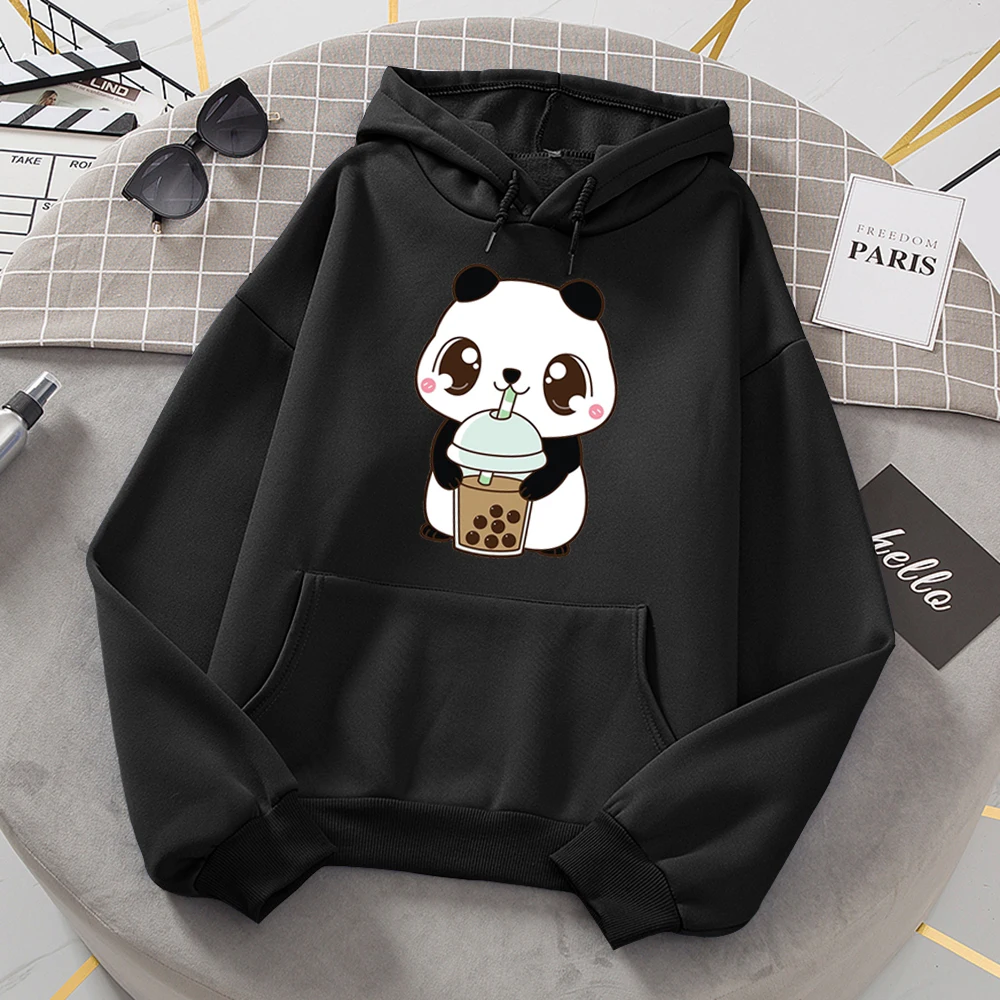 Женская толстовка с круглым вырезом и принтом в виде перламутрового молочного чая панды, Повседневная Свободная Толстовка с круглым вырезом