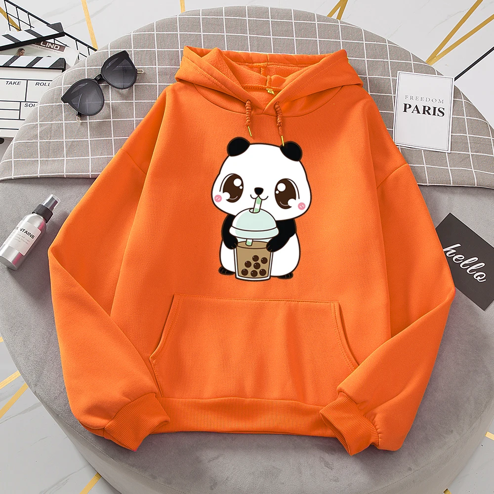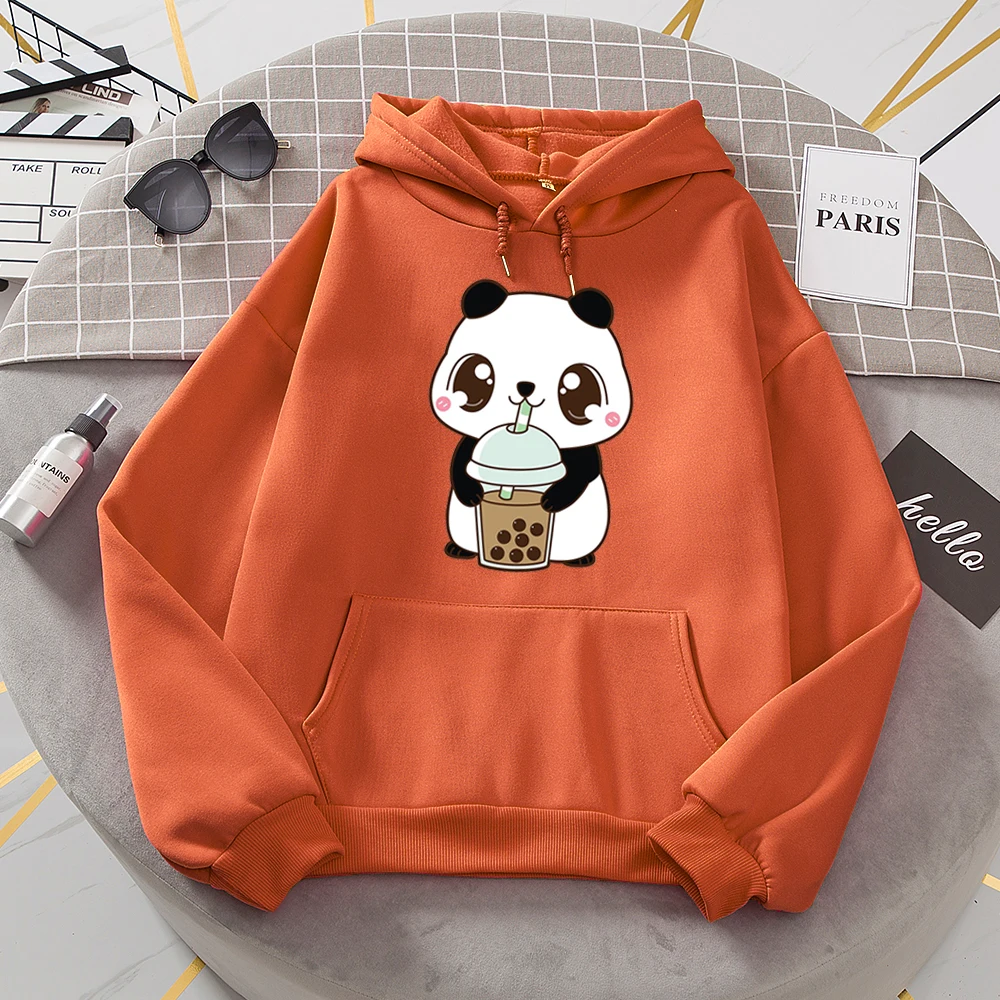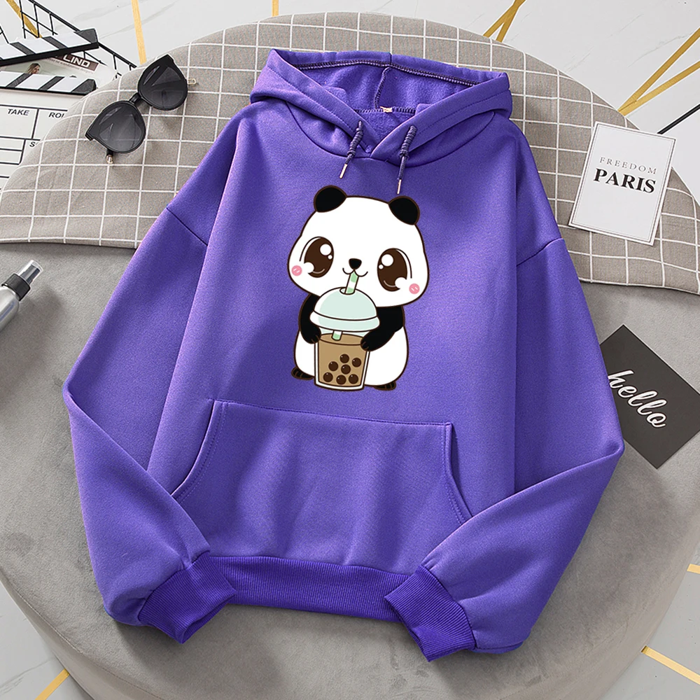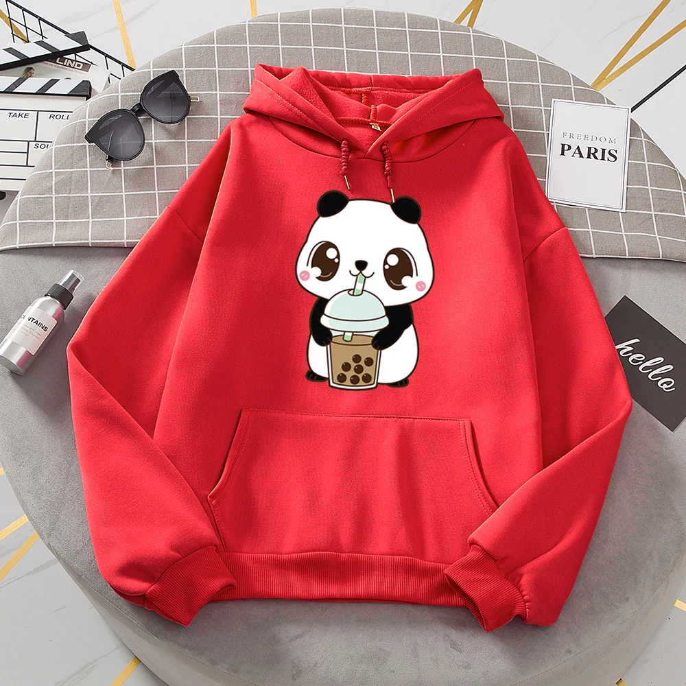 Женская толстовка с круглым вырезом и принтом в виде перламутрового молочного чая панды, Повседневная Свободная Толстовка с круглым вырезом