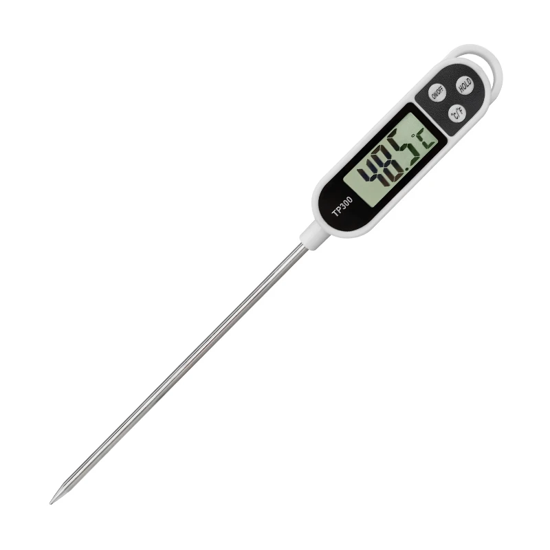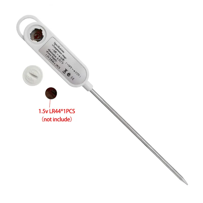 Цифровой кухонный пищевой термометр для приготовления мяса, воды, молока, еды, зонд, измеритель температуры, Электронная печь для барбекю, кухонные инструменты Особенности: Структура пера, зонд из нержавеющей стали, высокая точность, быстрое измерение температуры. Это может быть используется для домашняя кухня или барбекю. ЖК-дисплей для увеличения диапазона измерения, высокая стабильность. Небольшой размер, легко носить с собой, можно легко положить в сумку или карман. Для измерения наилучшей температуры детского питания. Описание: С помощью него вы легко сможете определить температуру из мяса. Подходит для любой кухонной техники, такой как холодильники, духовки, микроволновые печи и т. д. Очень полезный измерительный прибор, используемый для измерения внутренней температуры мяса, например, жарки, стейки или другие приготовленные продукты. Характеристики: Материал: металл Цвет: белый и черный Длина зонда: 150 мм Диапазон температур: -50 °-300 °(-58 - 572 по Фаренгейту) Время реакции: 5 секунд Батарея: батарейка для монет (1 * LR44)(не входит в комплект) Разрешение: 0,1 °C/0,1 ° F Посылка 1 пищевой термометр