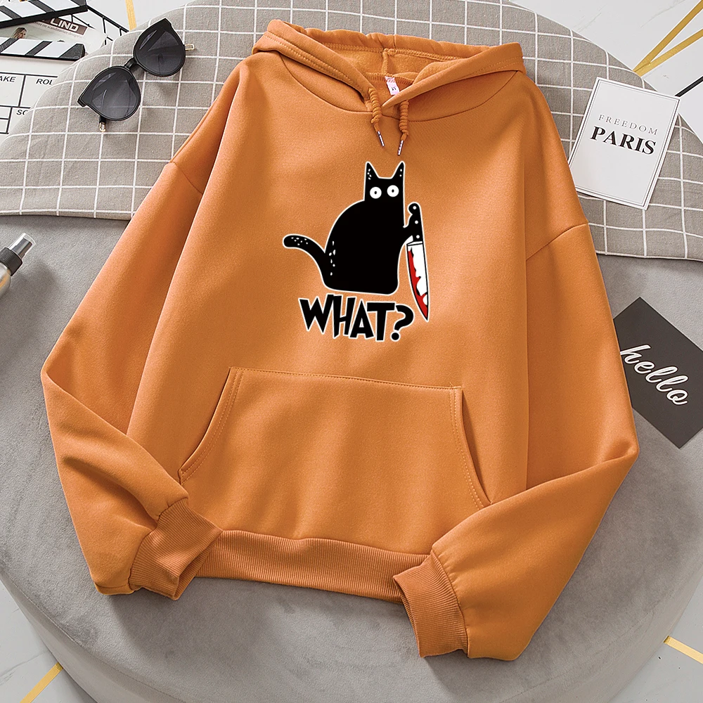 Женские толстовки с капюшоном с рисунком черного кота, модная уличная одежда, пуловер с капюшоном в стиле хип-хоп, флисовая женская толстовка