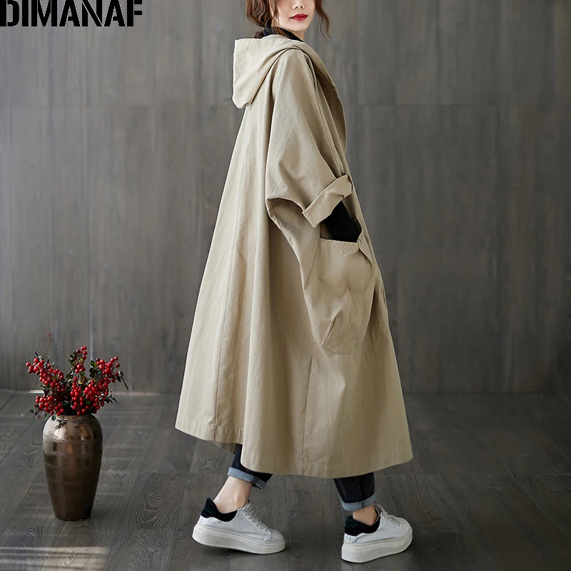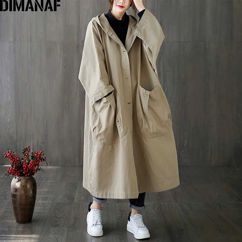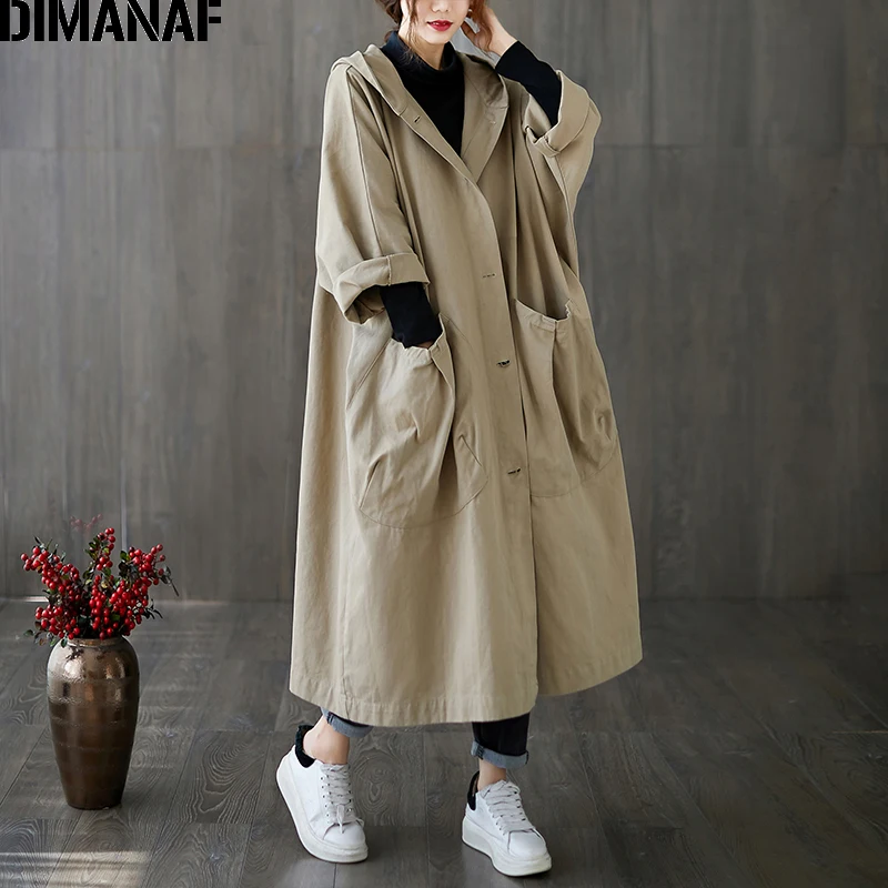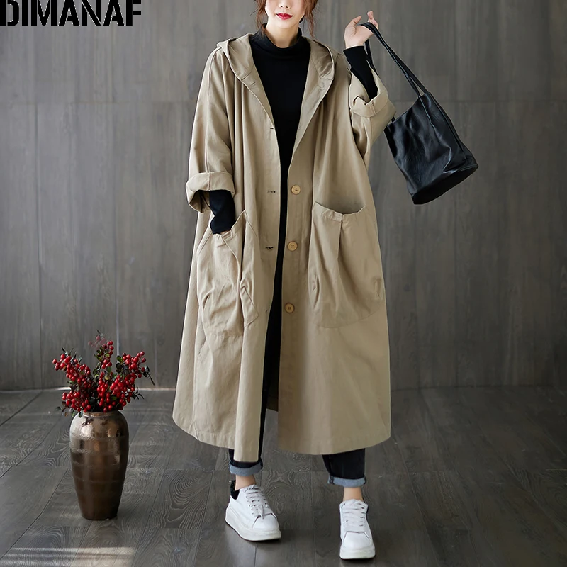 Женская куртка с капюшоном DIMANAF, Свободный кардиган оверсайз на пуговицах с карманами, верхняя одежда для осени и зимы