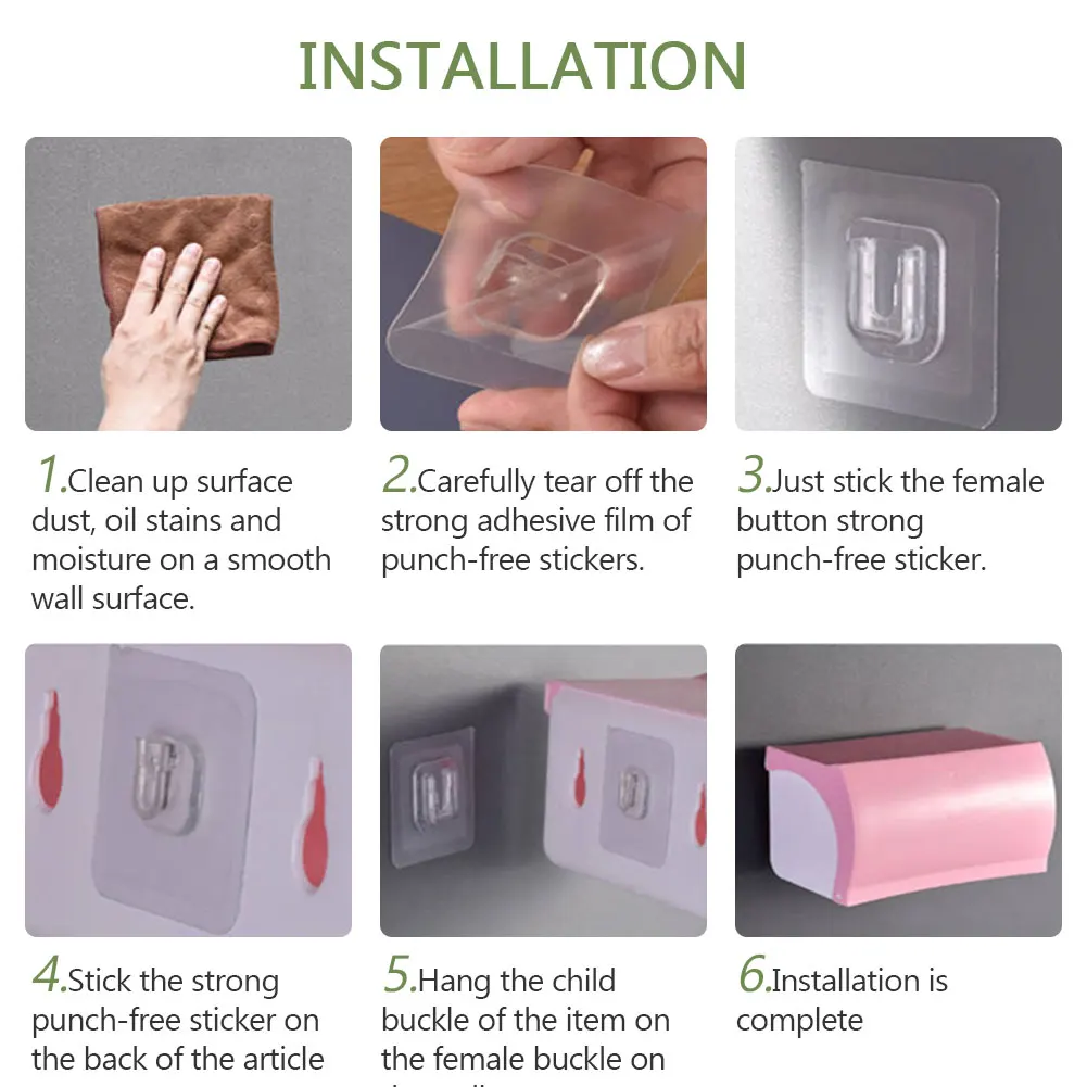 С двумя крючками, которые сочетаются друг с другом для легкой и удобной подвешивания, не беспокойтесь о том, что нет отверстия для подвешивания, И это до 15 кг на один набор крючков на стене и потолке. Без сверления, без винтов, без отверстий, без клея. Водонепроницаемость и маслостойкость, высокая и низкая температура. Сопротивление.