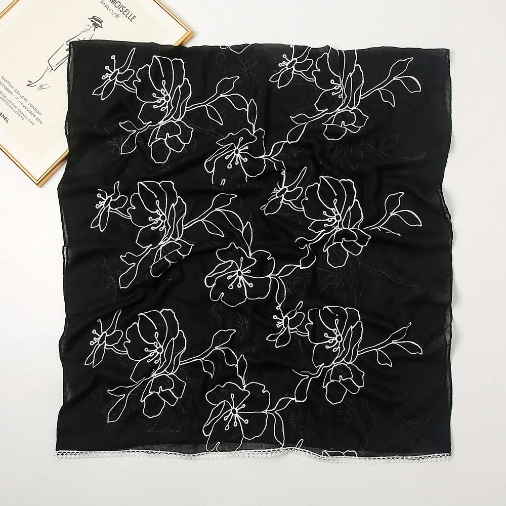Шарфы из хлопка, с цветочным принтом и вышивкой, длинные шали, хиджаб, 10 шт.партия, 2020