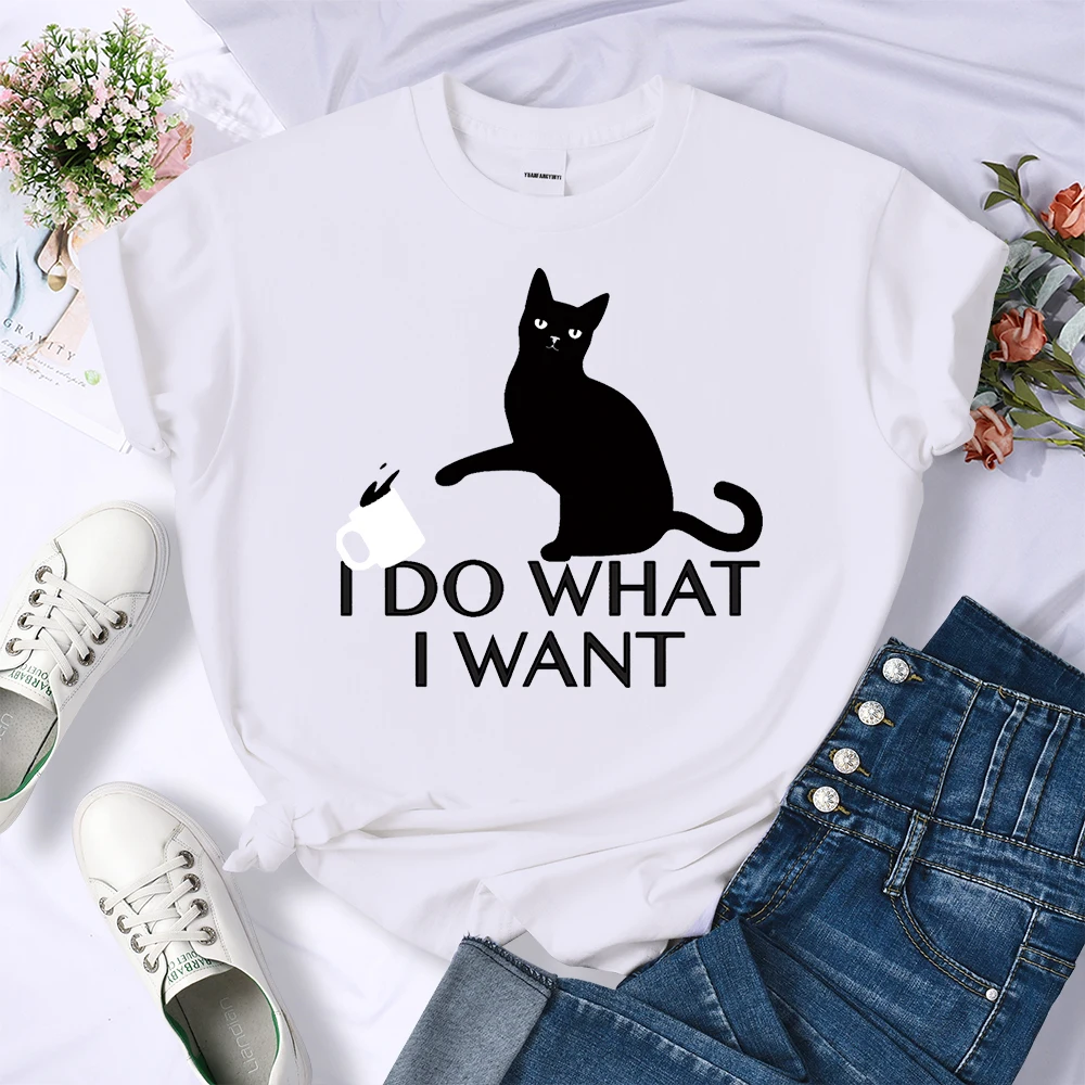 Женская футболка в стиле Харадзюку, с принтом кошки