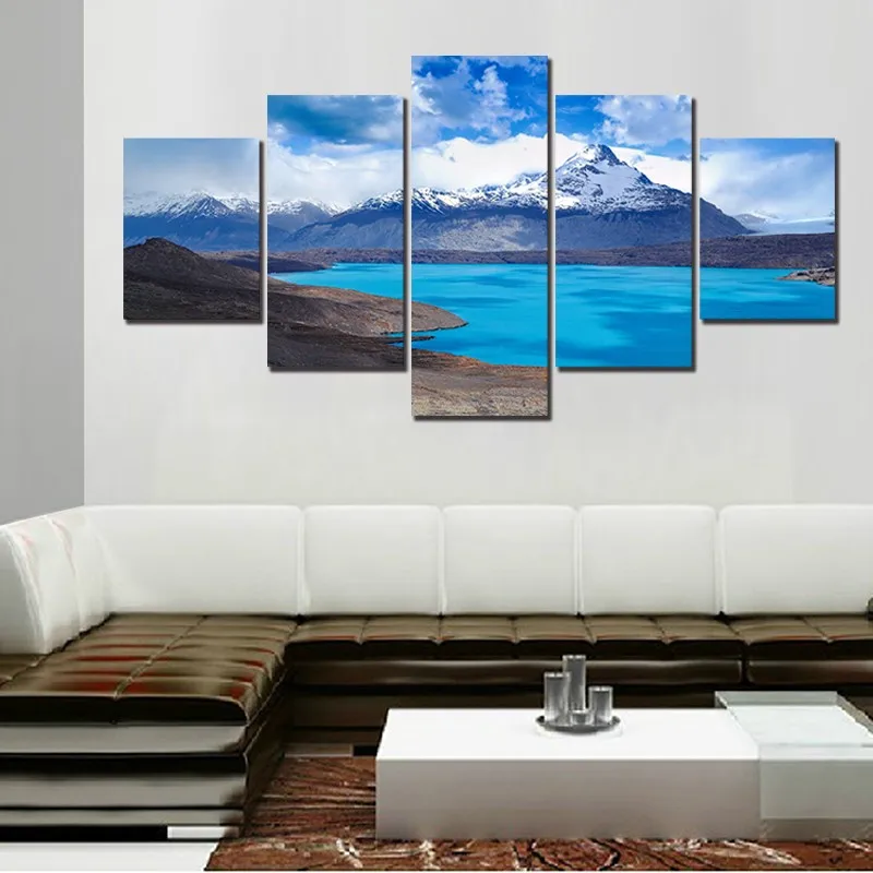 5 шт. холст настенное искусство прозрачное озеро голубое небо беско...