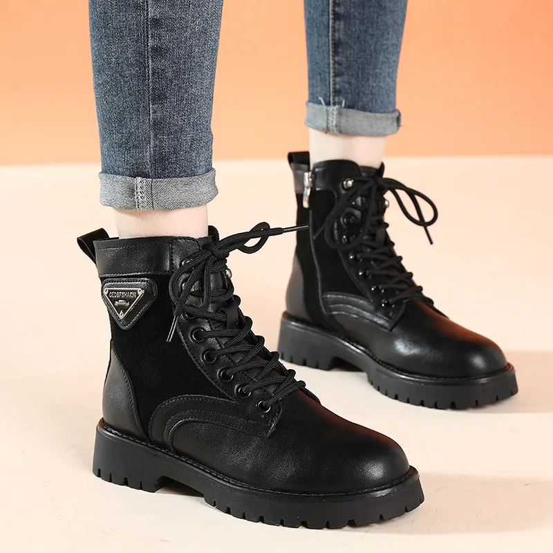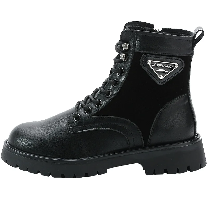 Женские теплые ботинки-мартинсы OUKAHUI, черные Повседневные Плюшев...