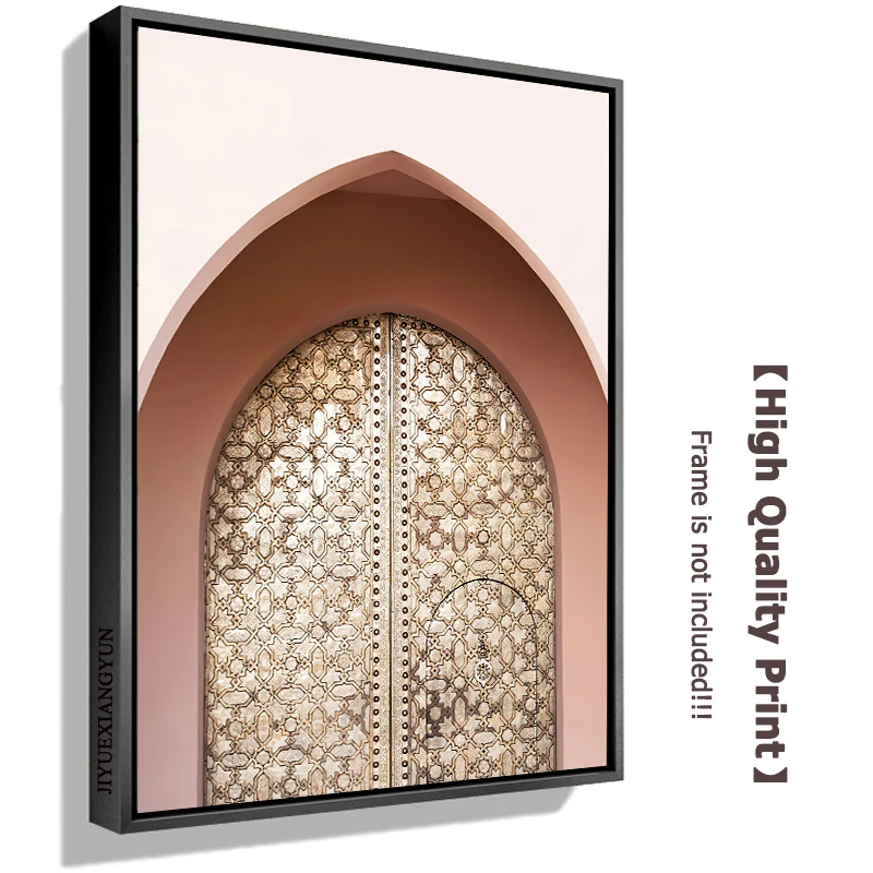 Исламский плакат бежевый цветок холст печать мечеть Марокко дверь н...