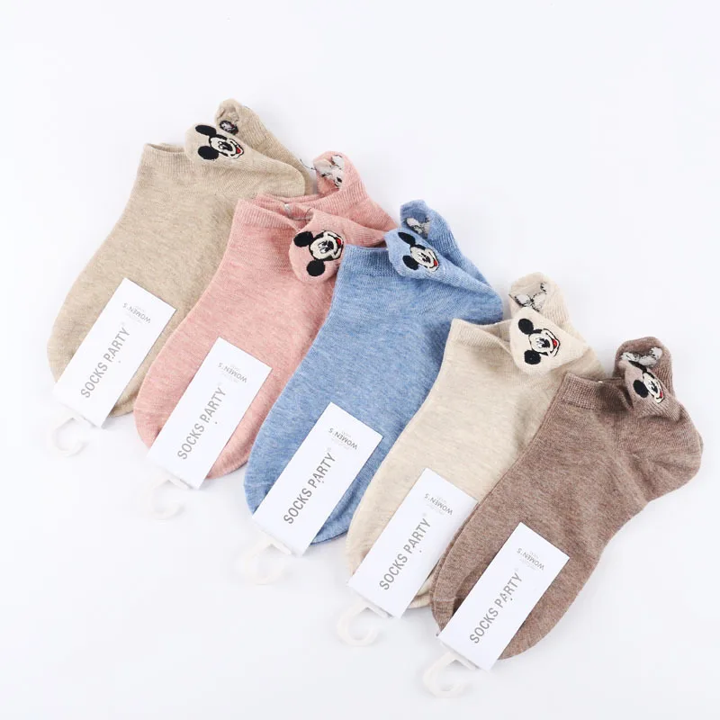5 парлот; Повседневные женские носки; Носки с изображением животных и Микки Мауса; Милые носки до щиколотки с вышивкой; Забавные носки для девочек; Хлопковые носки