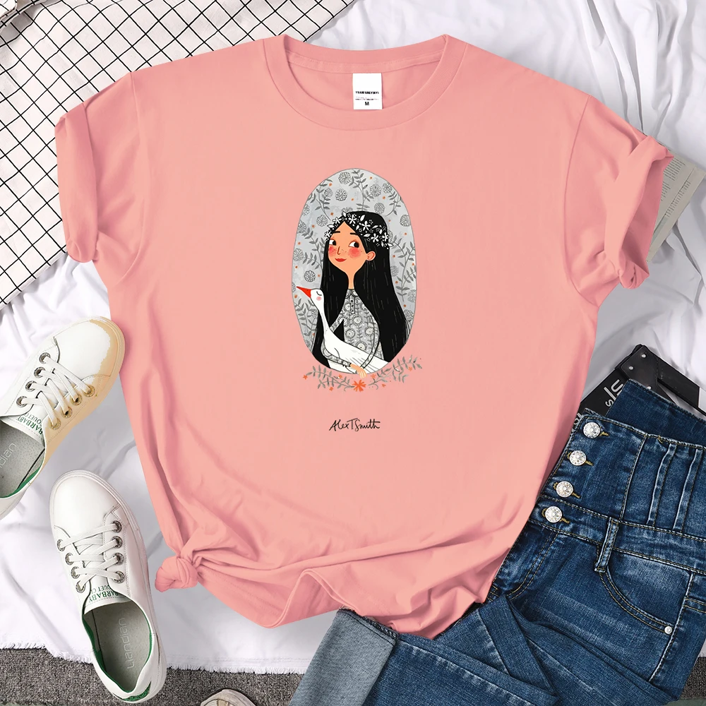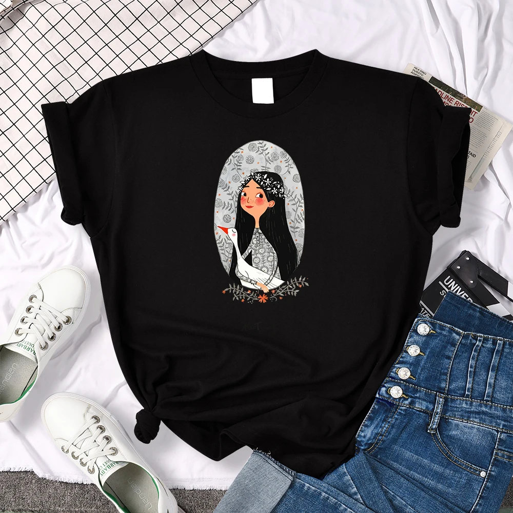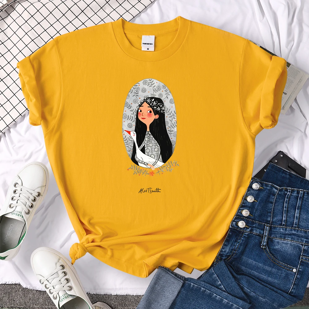 Женские топы с принтом гусиной девушки в стиле Харадзюку, футболка большого размера в стиле Харадзюку, одежда, свободные футболки, модная повседневная женская футболка