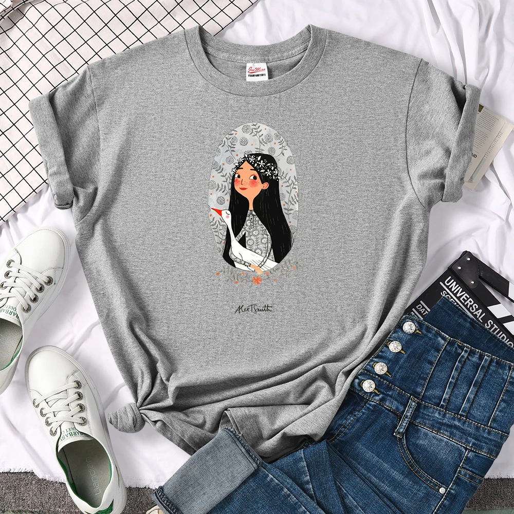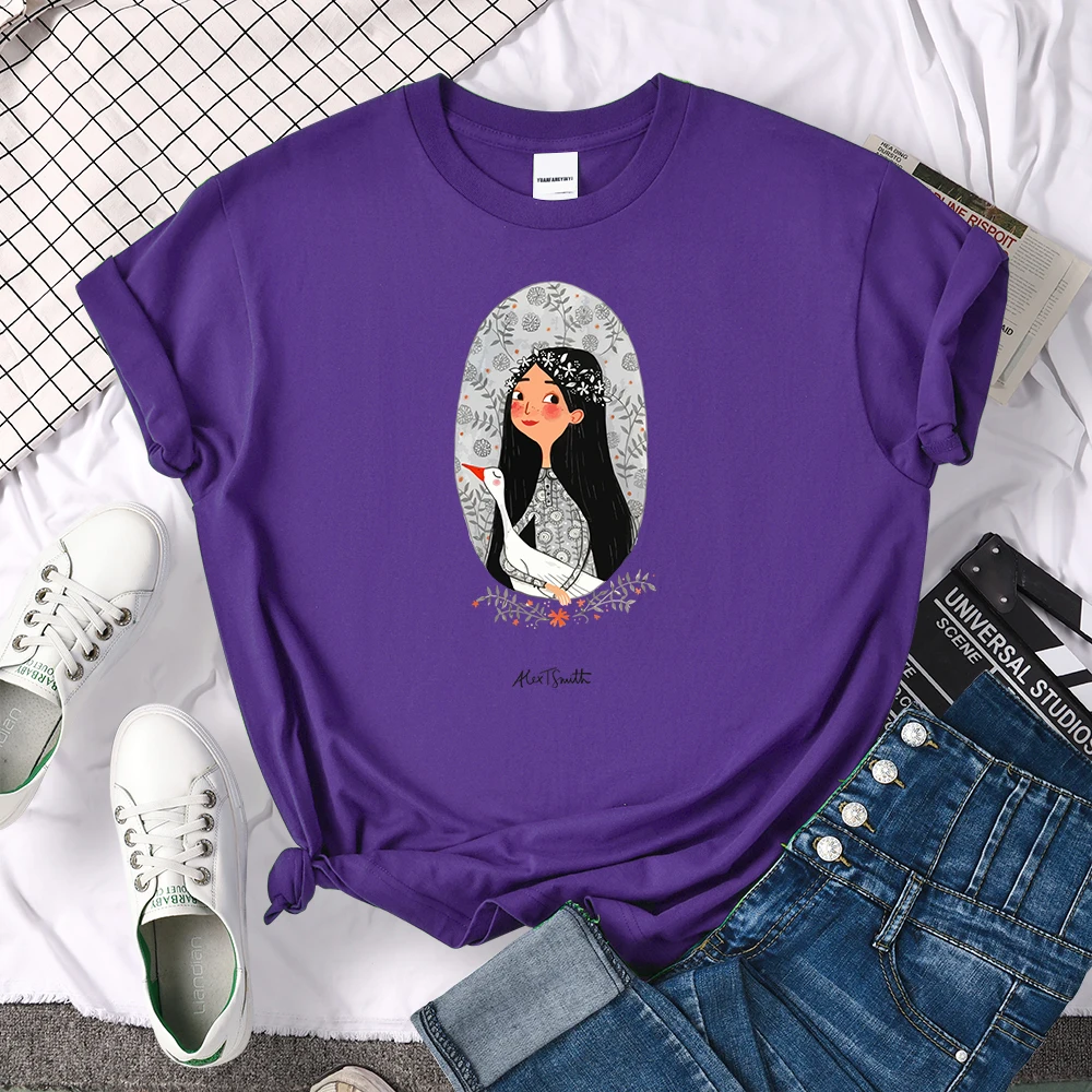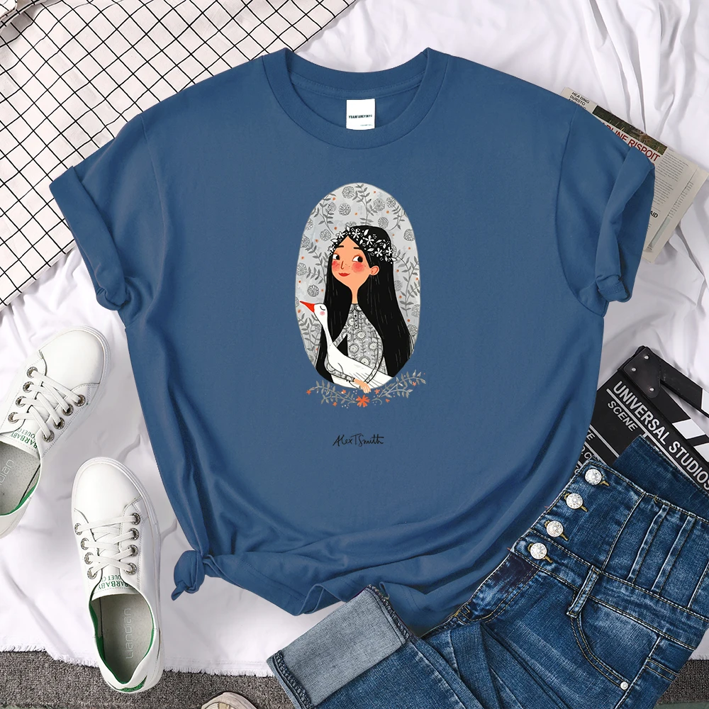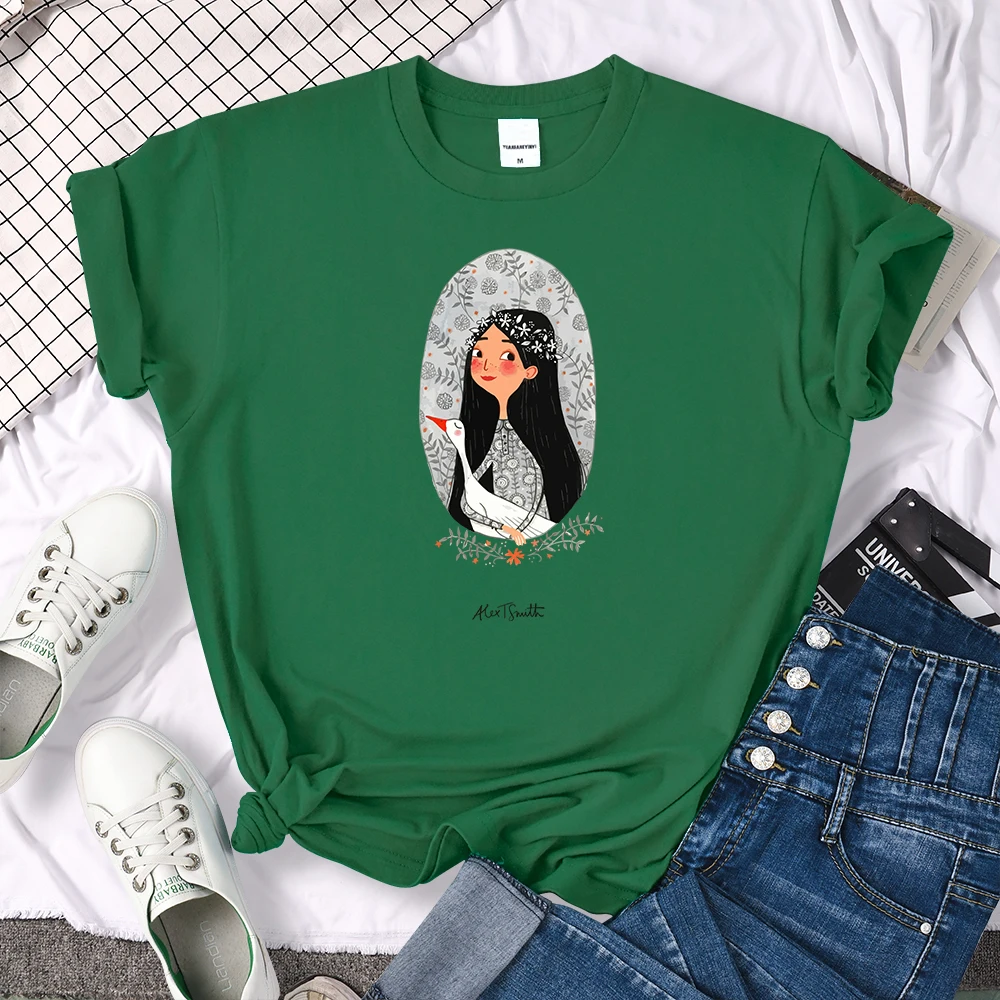 Женские топы с принтом гусиной девушки в стиле Харадзюку, футболка большого размера в стиле Харадзюку, одежда, свободные футболки, модная повседневная женская футболка