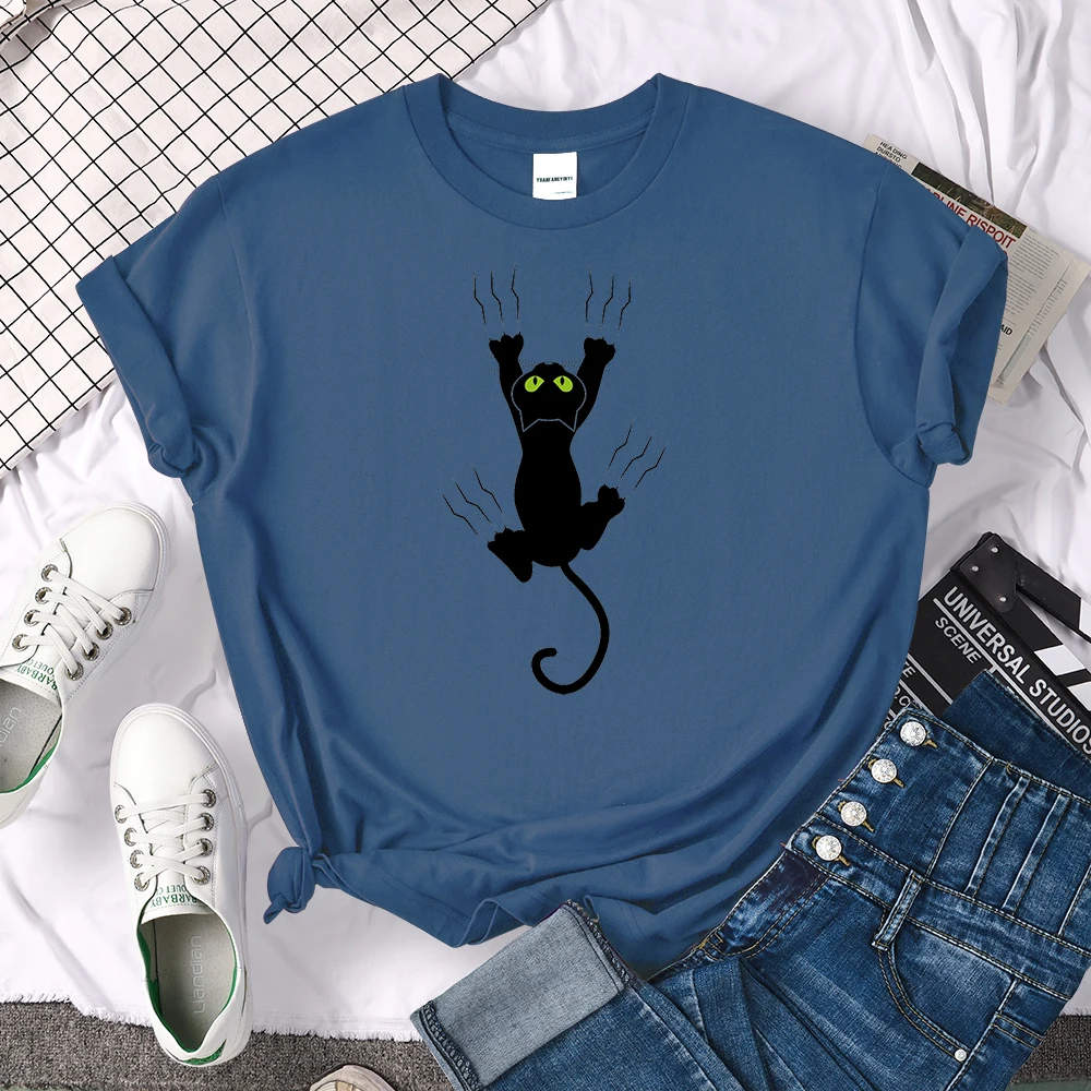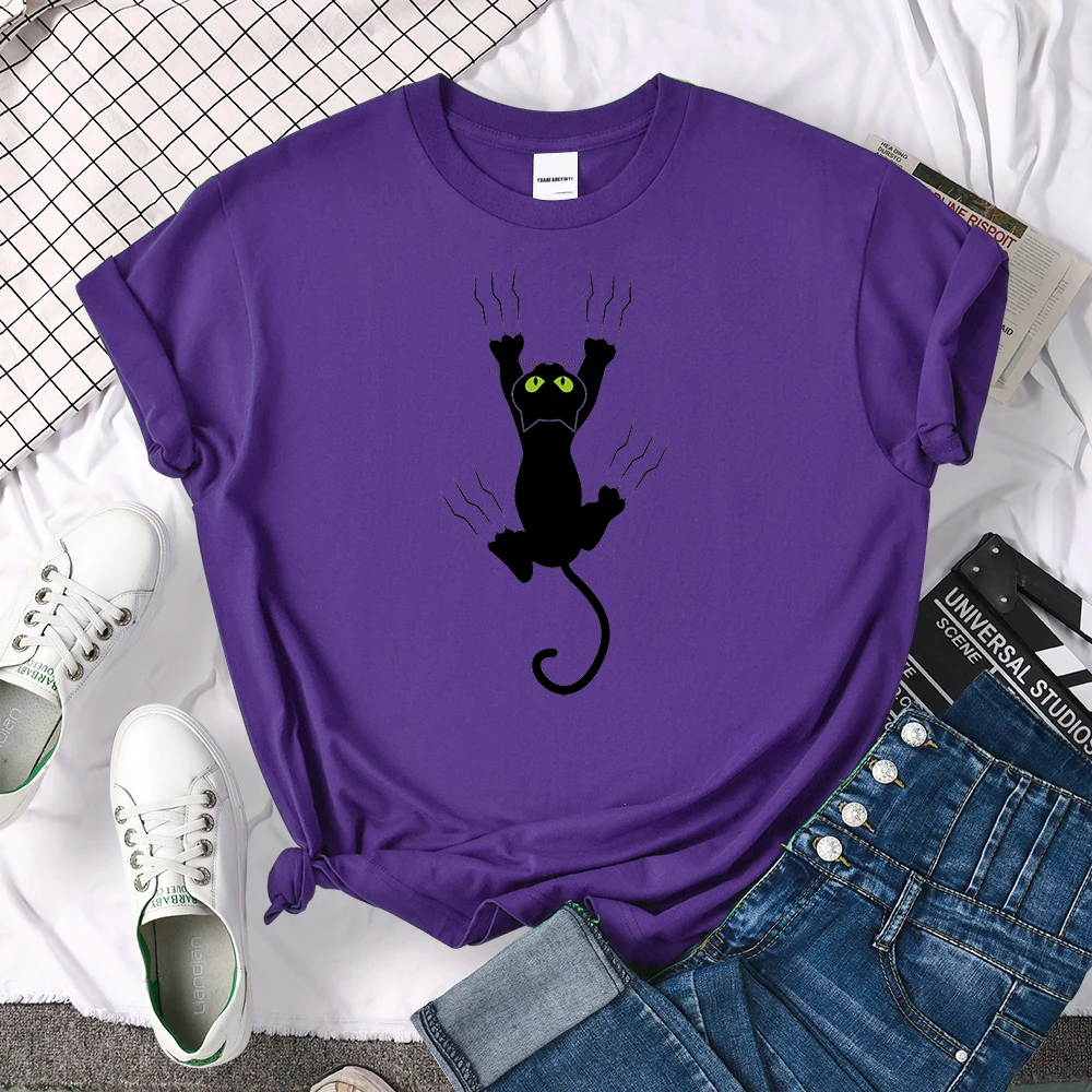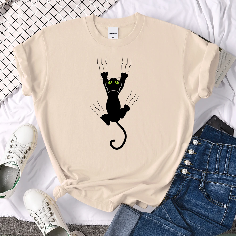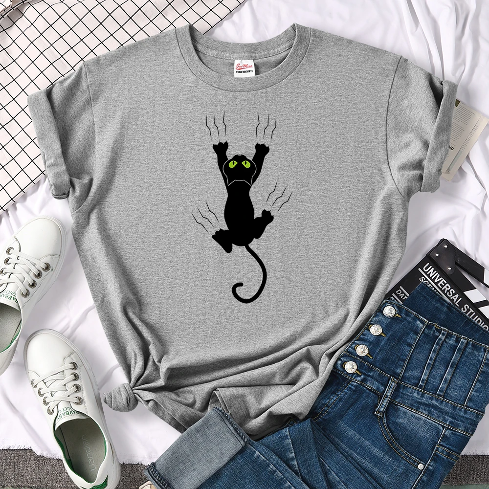 Новая футболка с принтом озорной черной кошки, Женская свободная футболка с круглым вырезом, хлопковая Футболка с рисунком для пар, летние креативные свободные футболки для мужчин