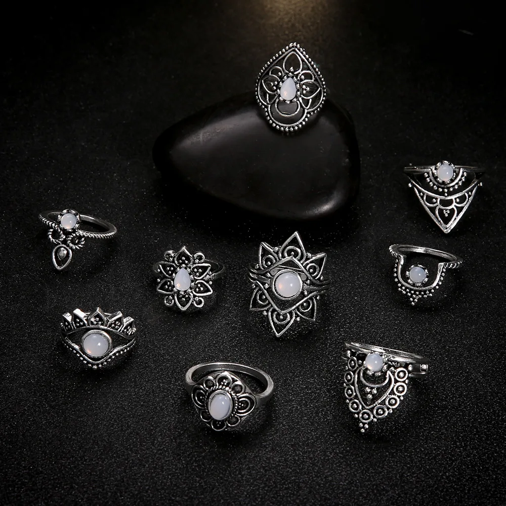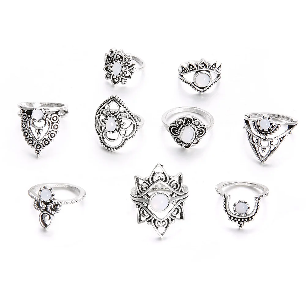 9 шт.компл. в богемном стиле, в винтажном стиле, с цветочным принтом кольца для женщин с украшением в виде кристаллов короны геометрической формы женские кольца на палец, комплект ювелирных изделий