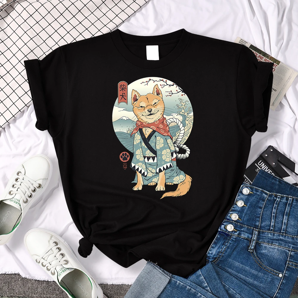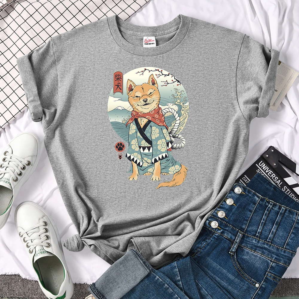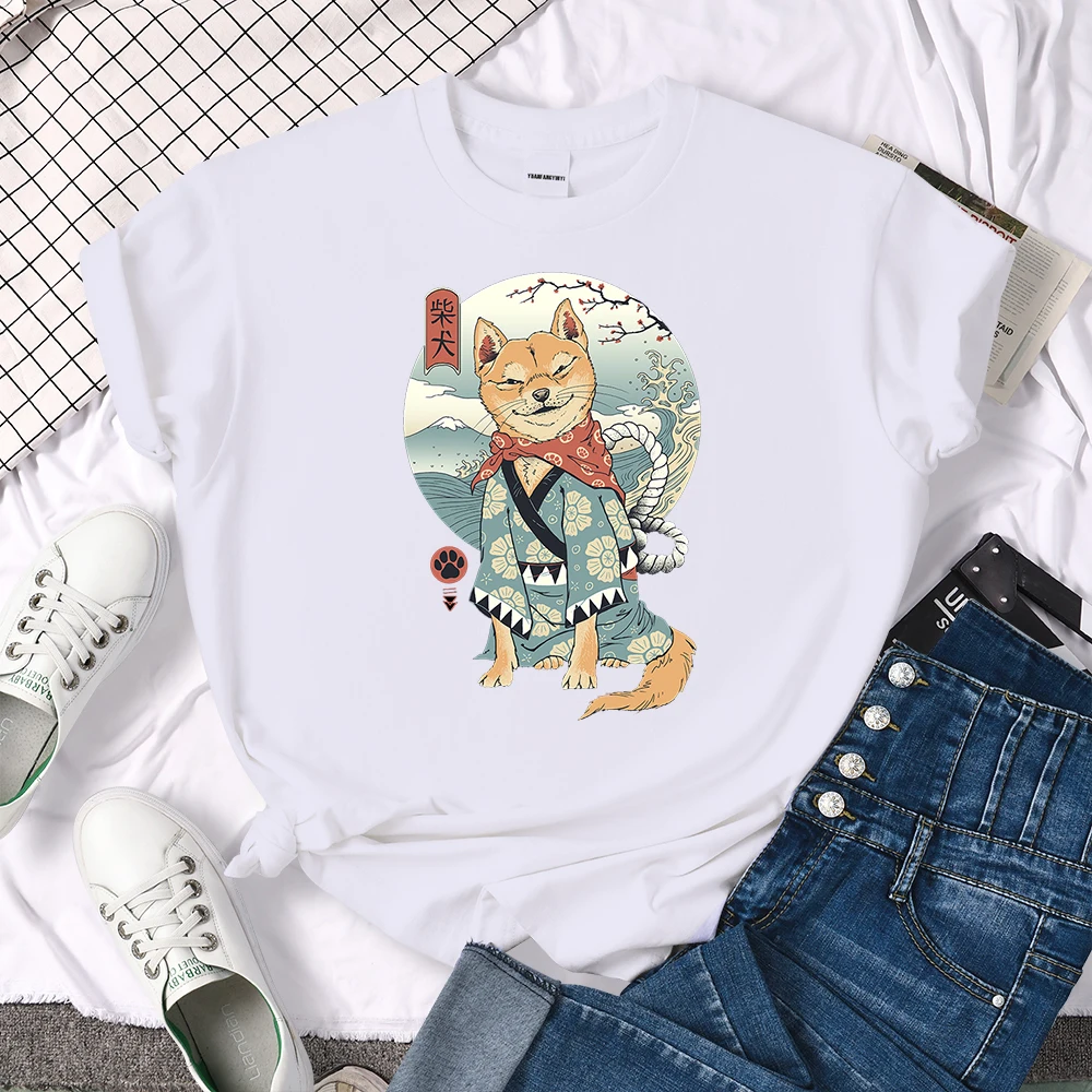 Футболка Ukiyoe с мультипликационным принтом Шиба-ину, Женская креативная футболка, одежда, свободная летняя футболка, свободные дышащие женские топы