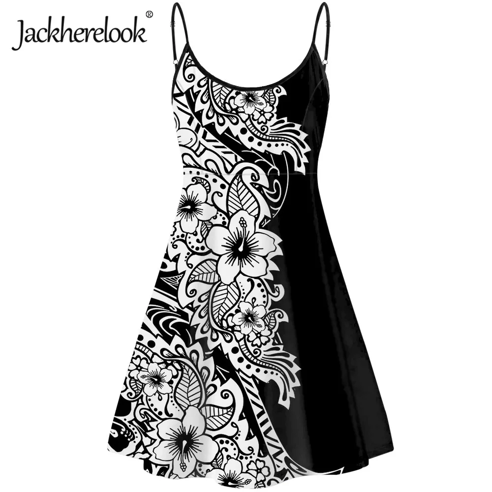 Jackherelook полинезийский Племенной Гибискус брендовый дизайнерский женский черный комбинезон повседневное пляжное платье без рукавов для девочек Mujer