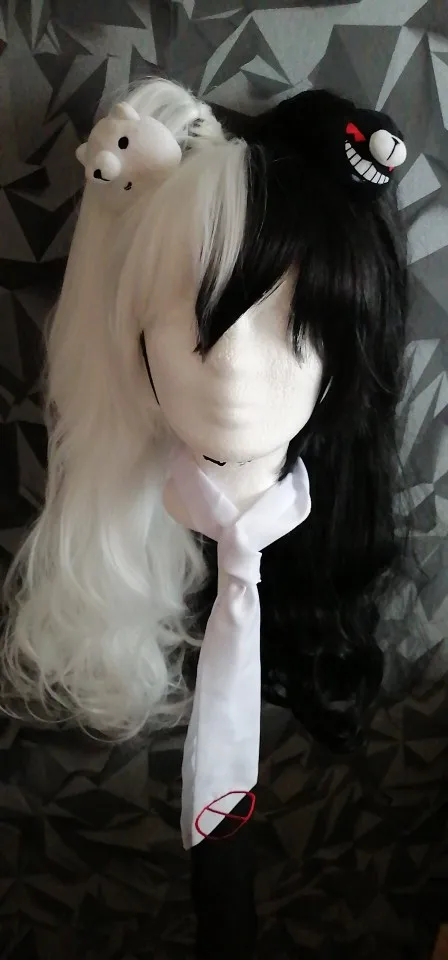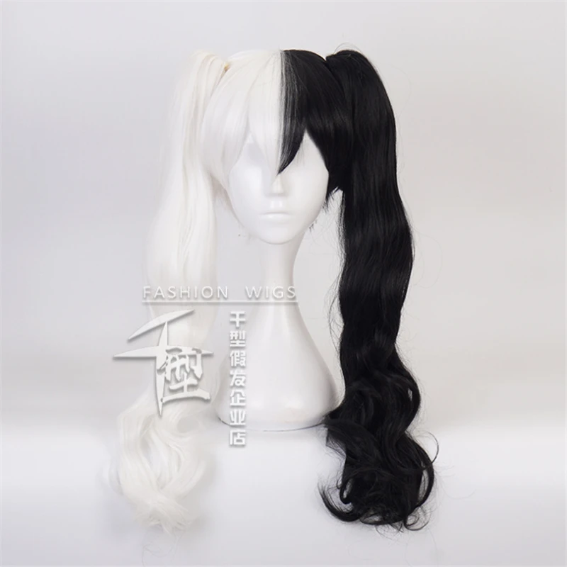 Аниме Danganronpa парик Монокума Косплей Костюм Dangan Ronpa Женщины Длинные белые черные синтетические волосы парики для вечеринок на Хэллоуин