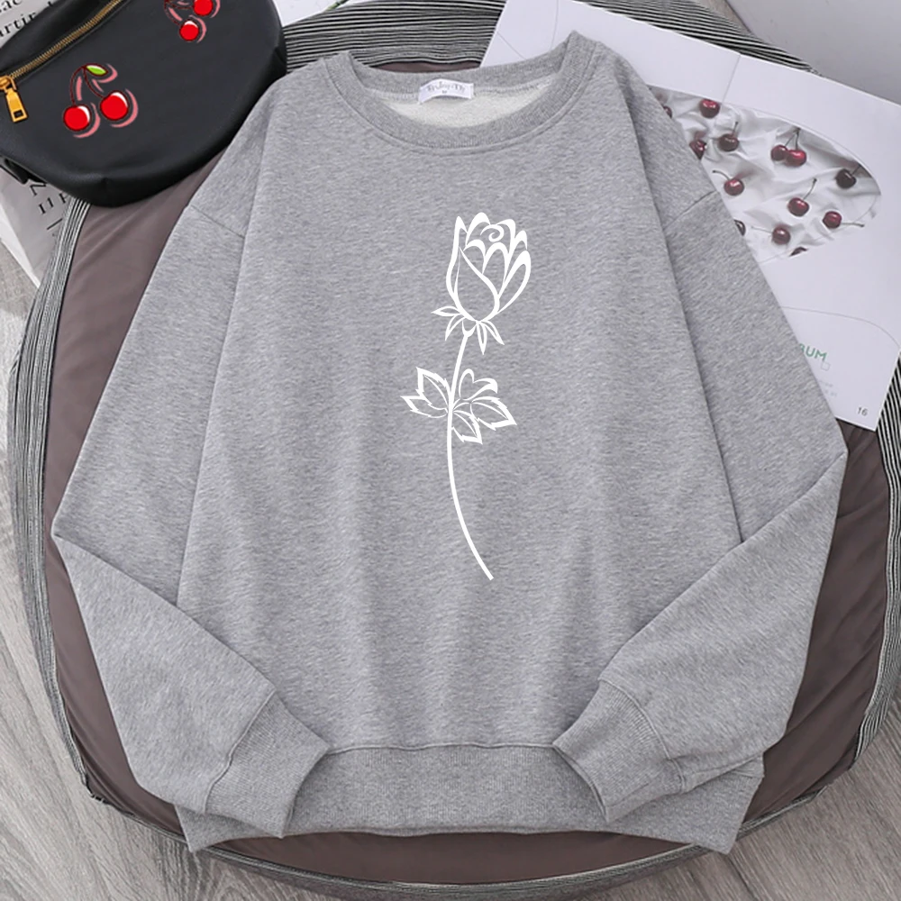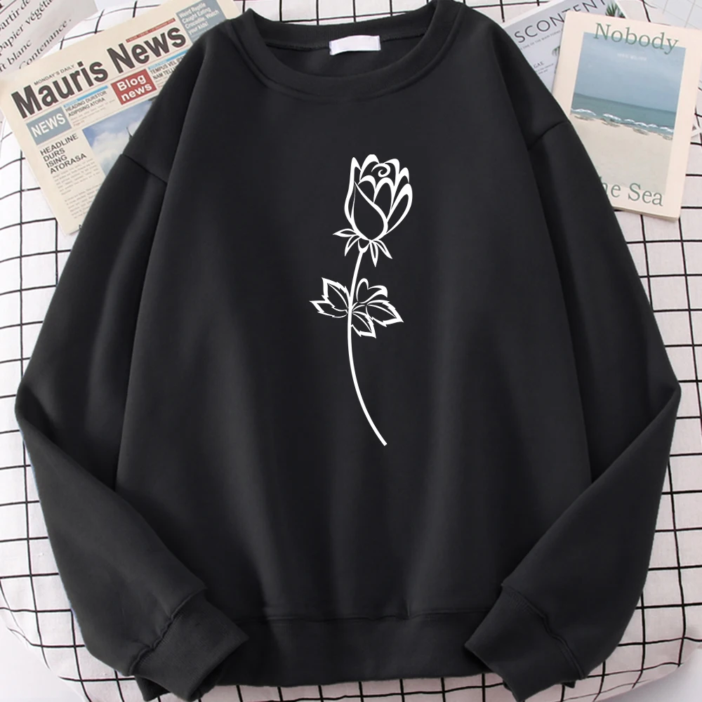 Женская толстовка с принтом розы, черный и белый цвета, осенний Новый пуловер, уличная одежда в стиле хип-хоп, свободная повседневная толстовка из флиса