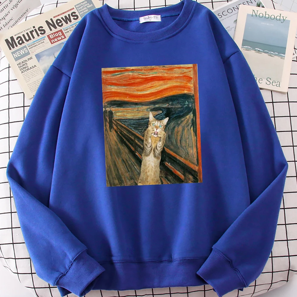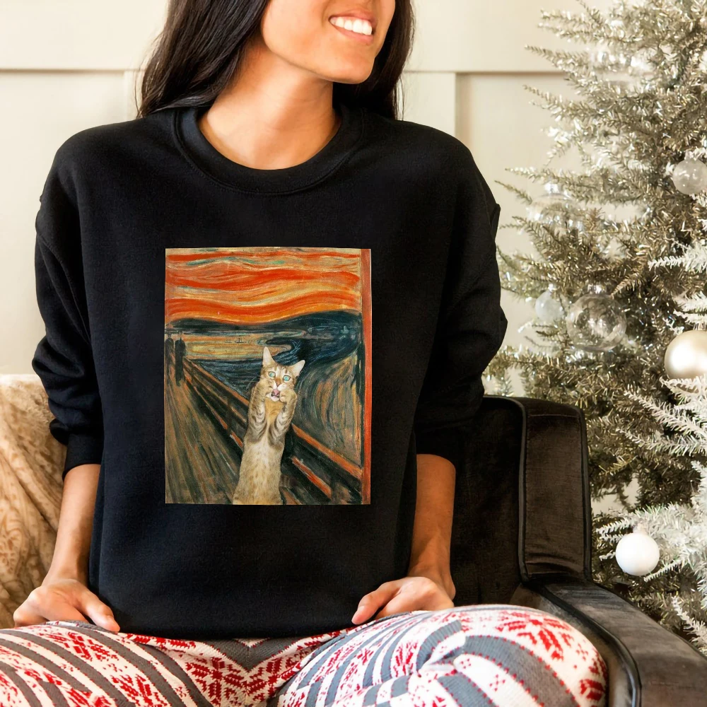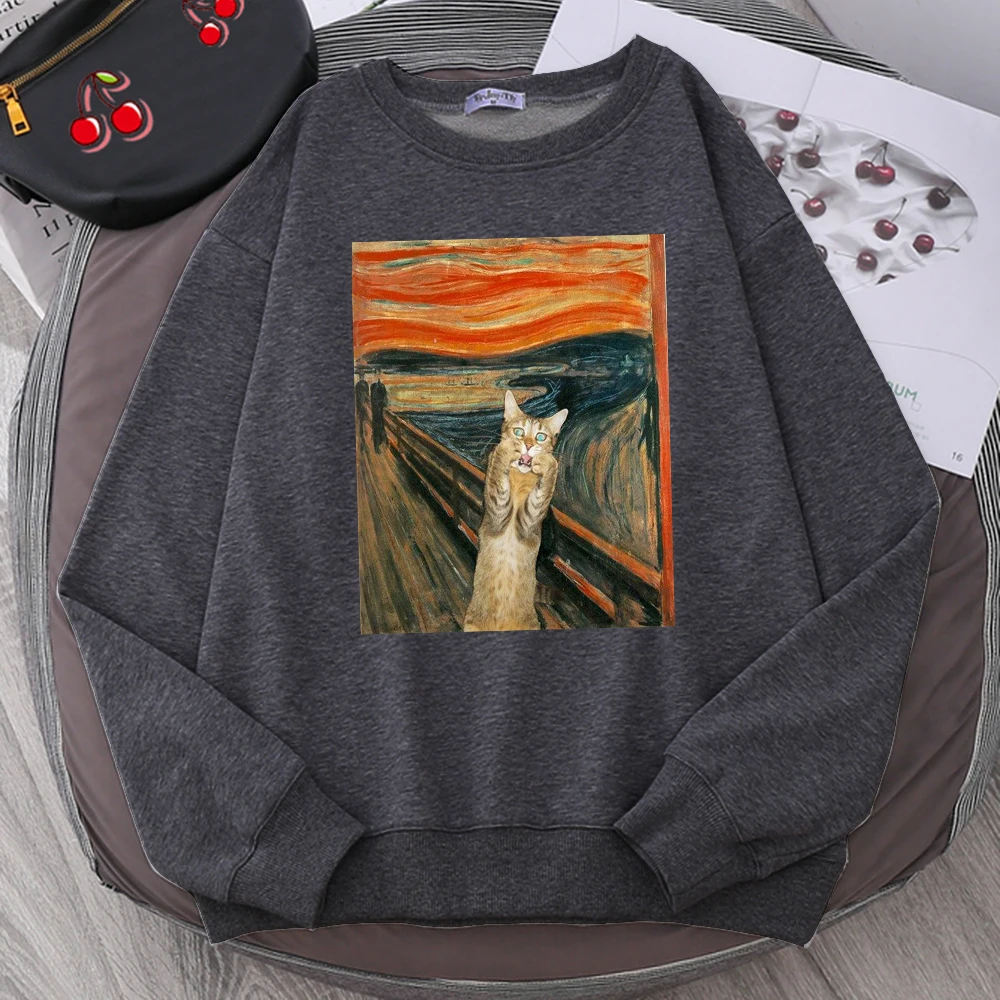 Женский свободный флисовый пуловер с принтом в виде масляной живописи, свитшоты с круглым вырезом, осенняя модная Женская толстовка с капюшоном