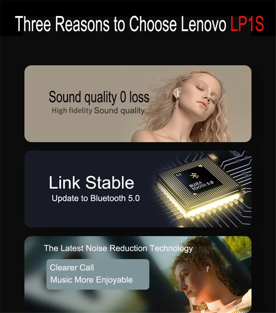 Оригинальные беспроводные наушники Lenovo LP1S TWS Bluetooth 5,0 с ...