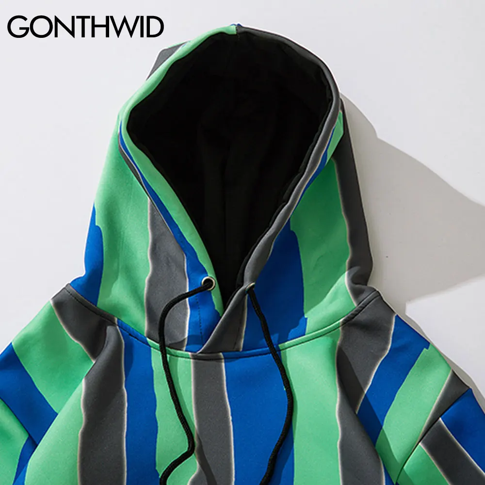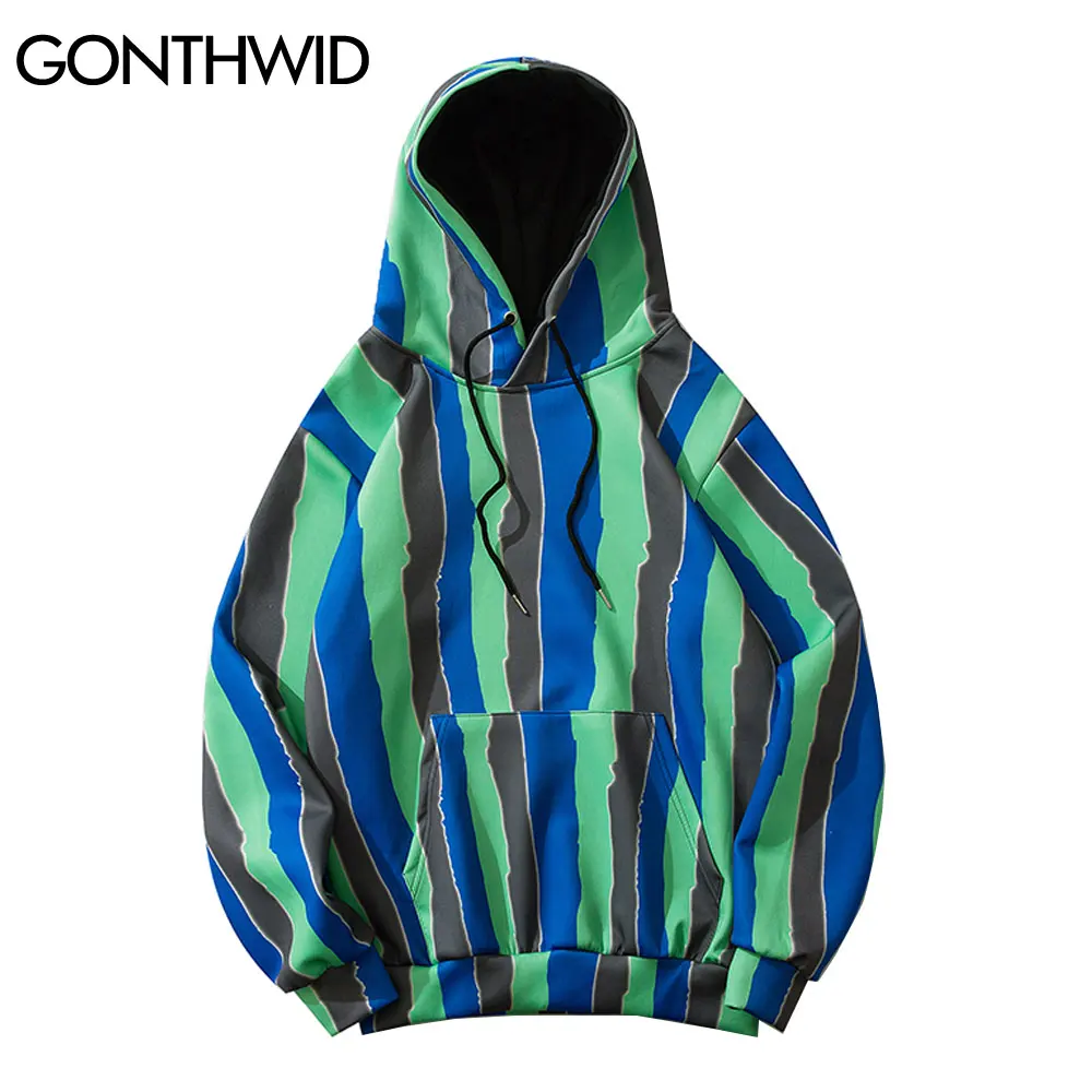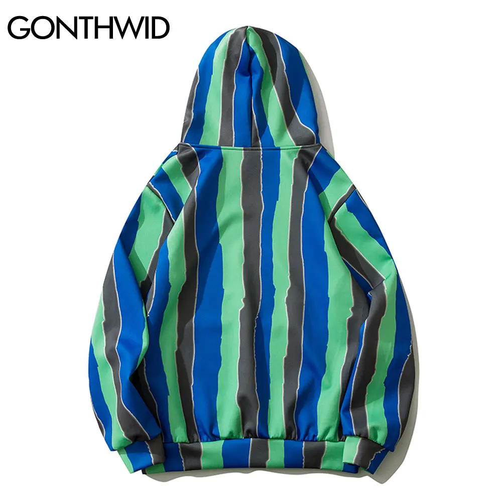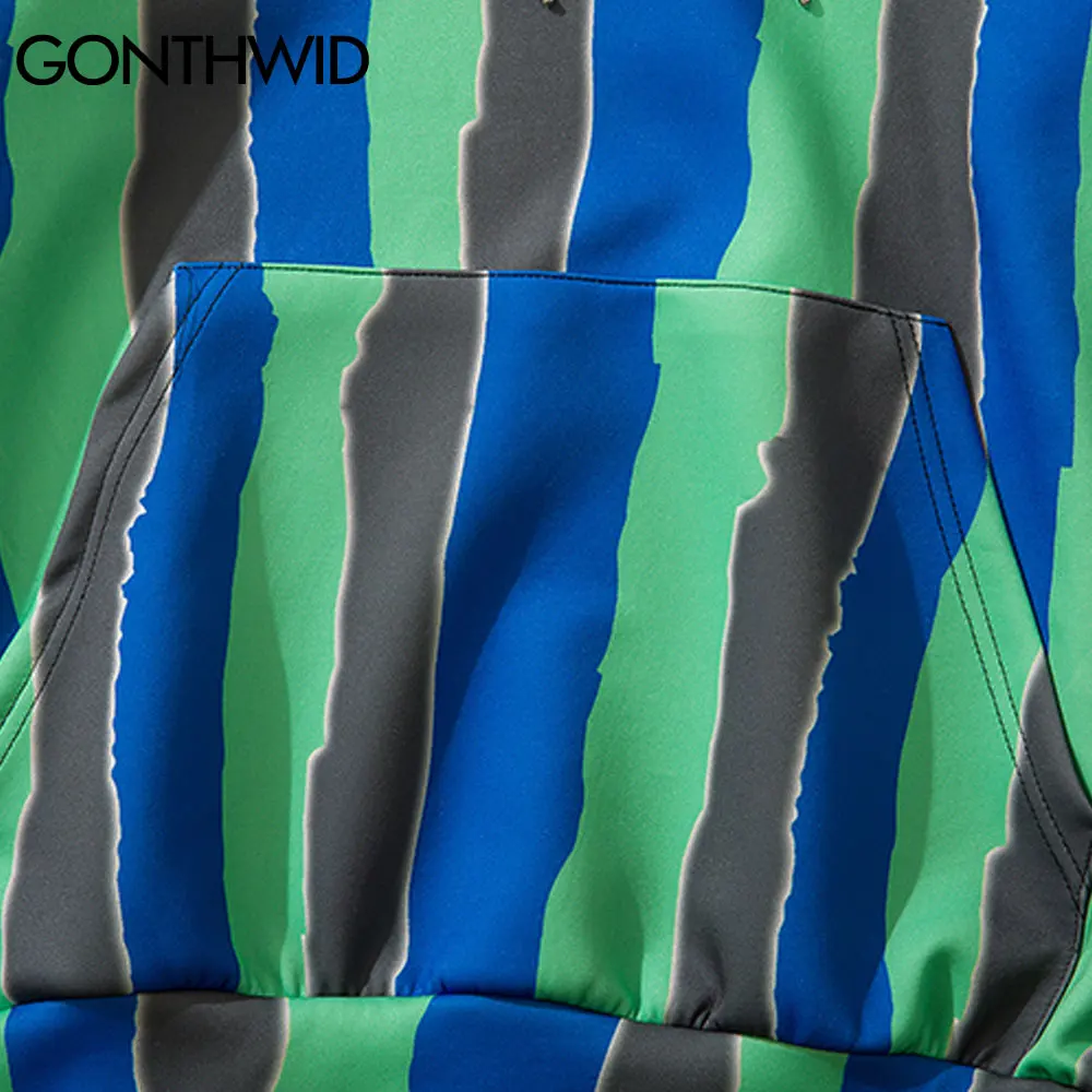 Мужские толстовки в полоску GONTHWID, уличная одежда в стиле хип-хоп, повседневные тонкие модные уличные толстовки с капюшоном, пальто для мужчин