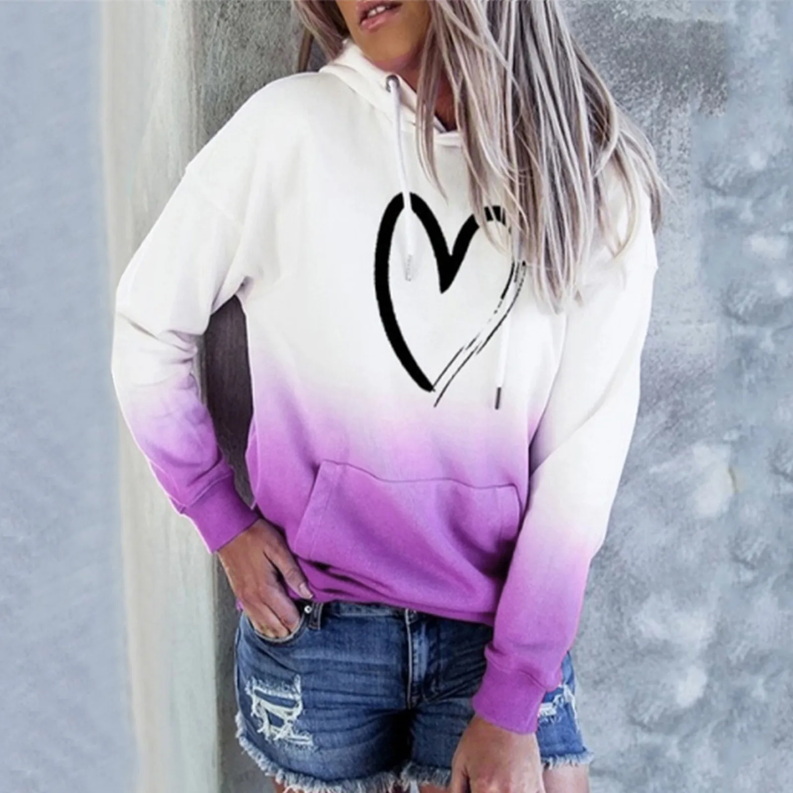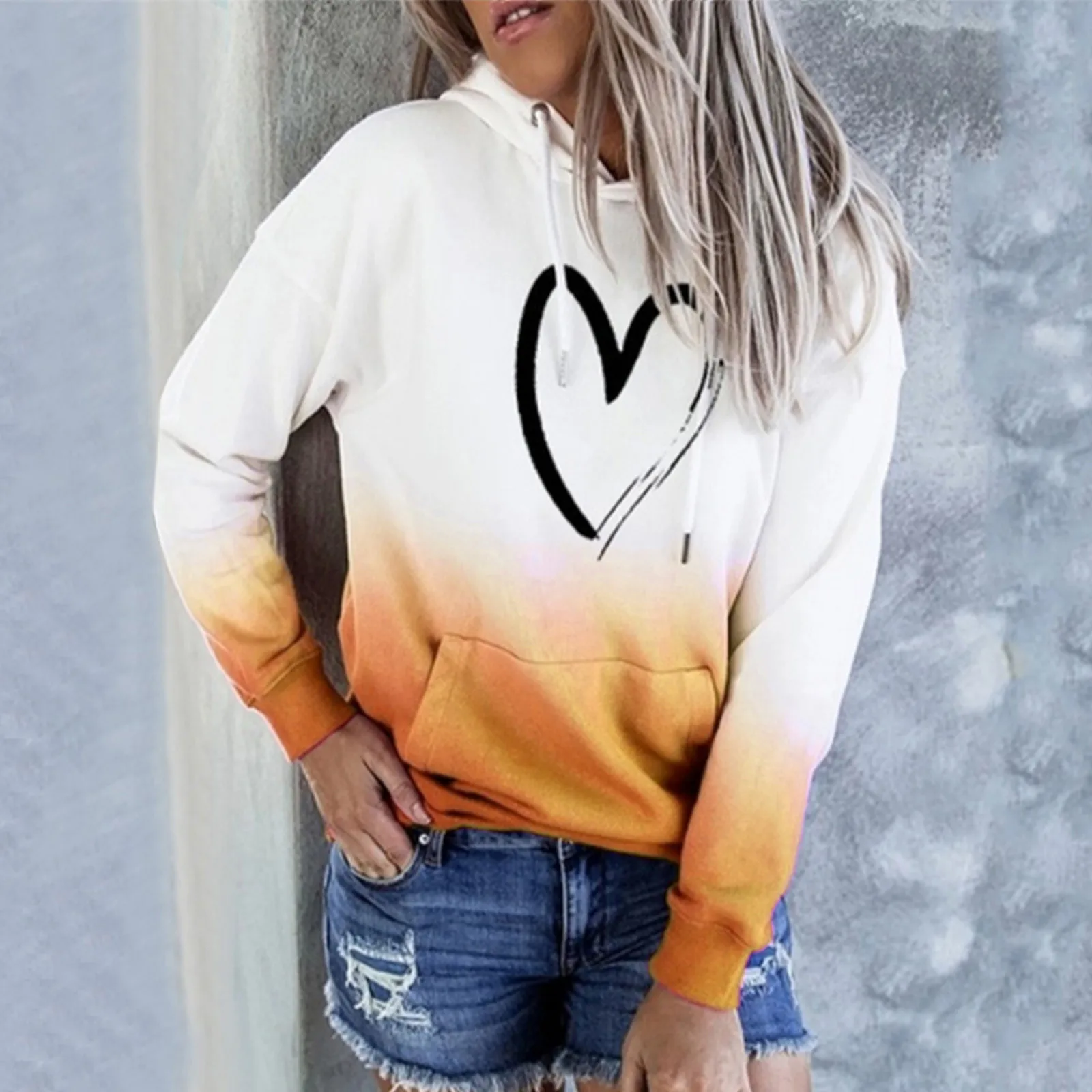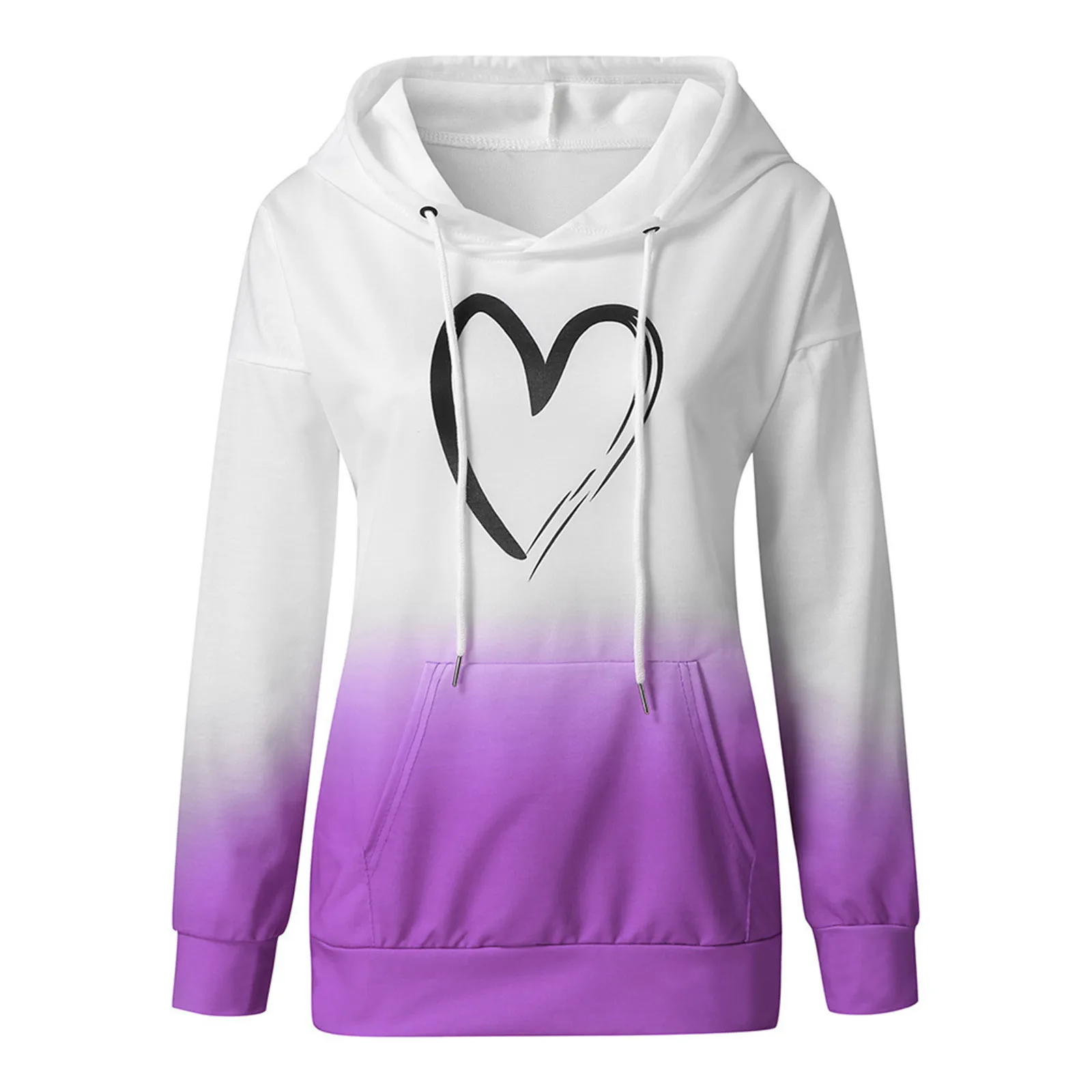40 # женские толстовки Harajuku размера плюс с принтом в виде сердца и галстука-красителя, градиентный пуловер с длинным рукавом, осенняя Толстовка С Карманами, базовые Топы