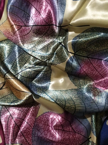 Это, конечно, не шёлк. Жестковат. Яркие цвета. доставили быстро. Мне понравилось. Спасибо.