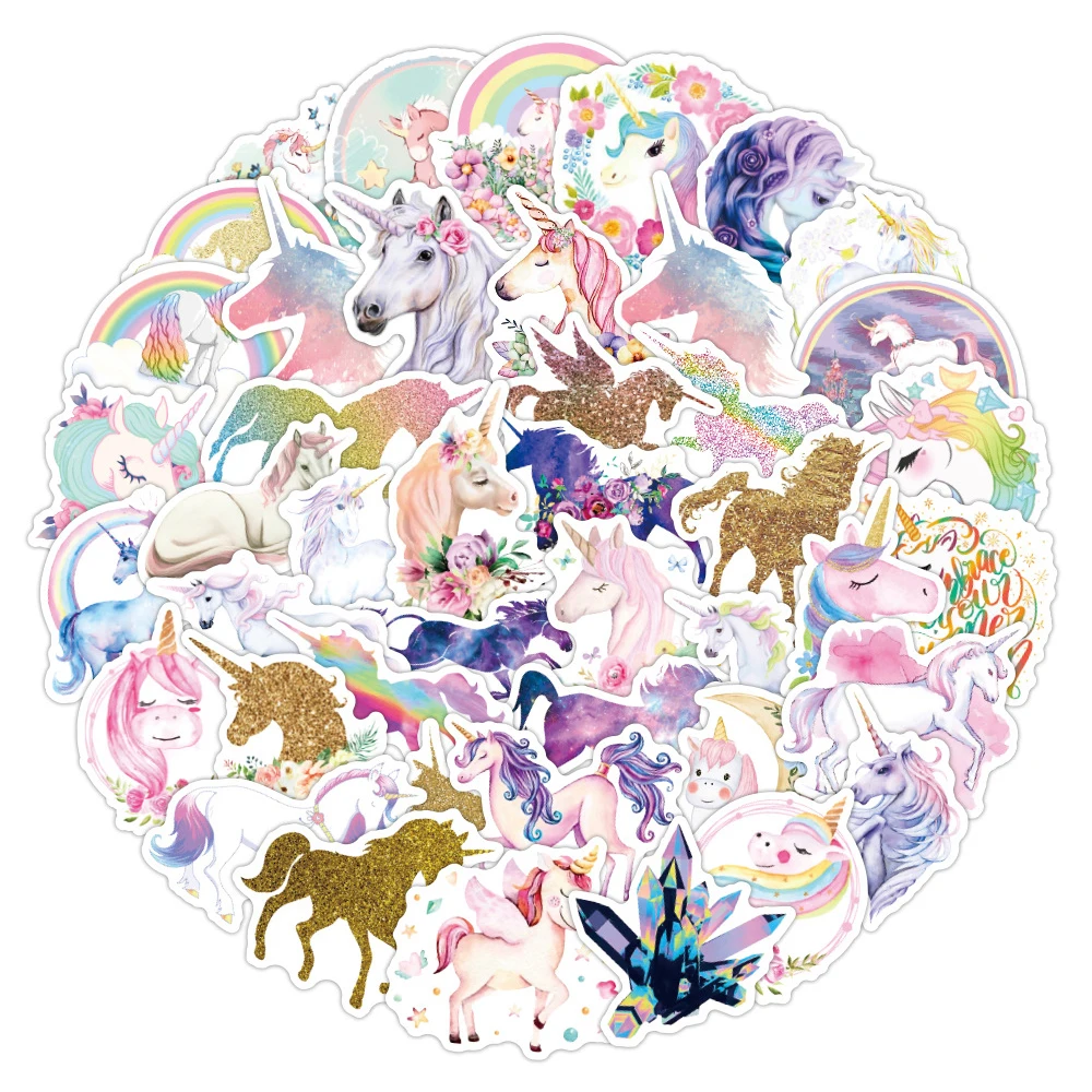 50 шт.упак. мультфильм Единорог наклейка "лошадь" для чемодана гитары бампер скейтборд Водонепроницаемый Милые надписи наклейки игрушки
