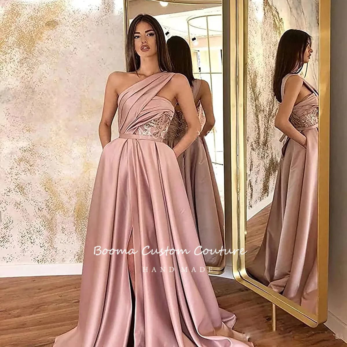 Платье женское длинное атласное на одно плечо, с оборками и разрезом, вечернее платье-трапеция с блестками, без бретелек, с карманами, для выпускного вечера