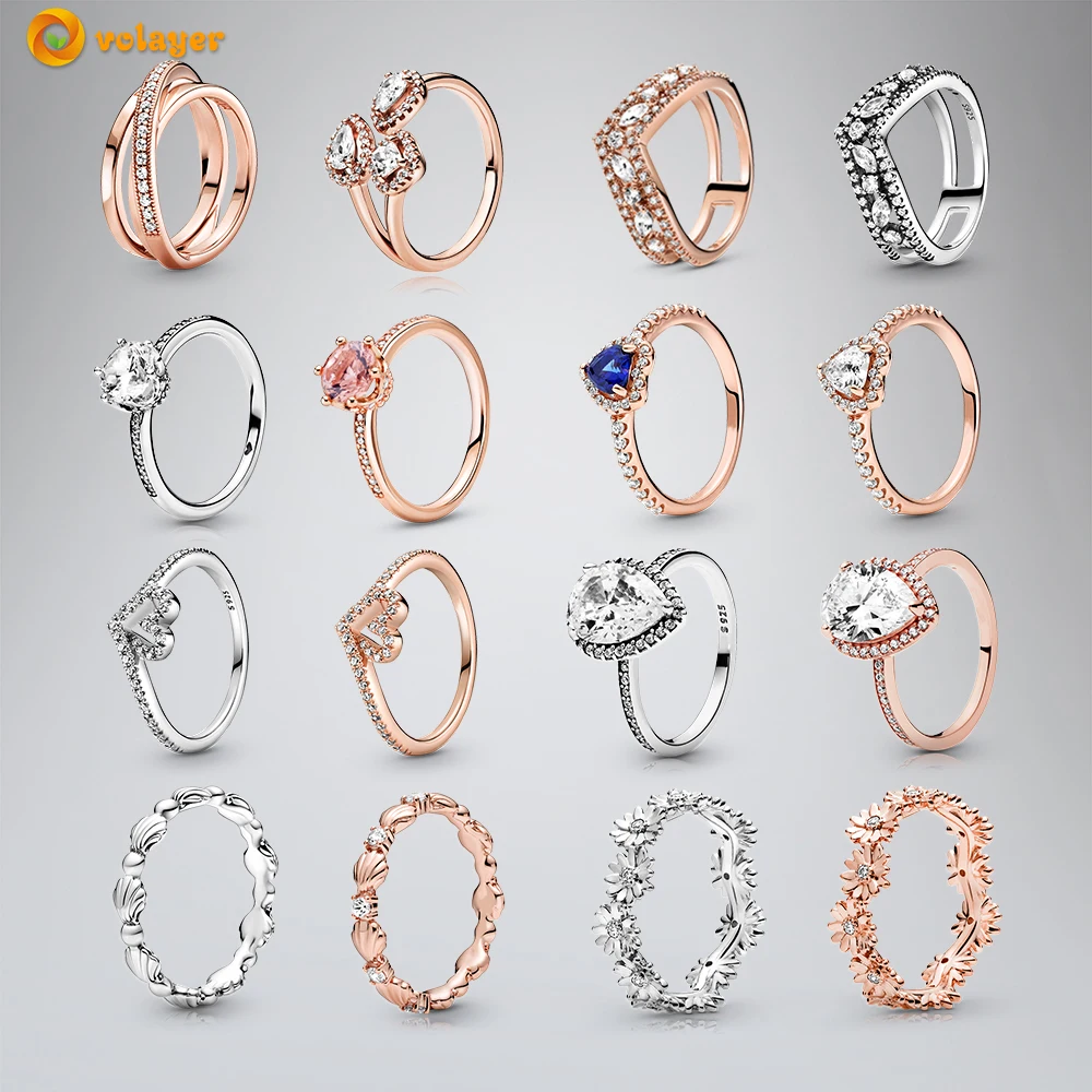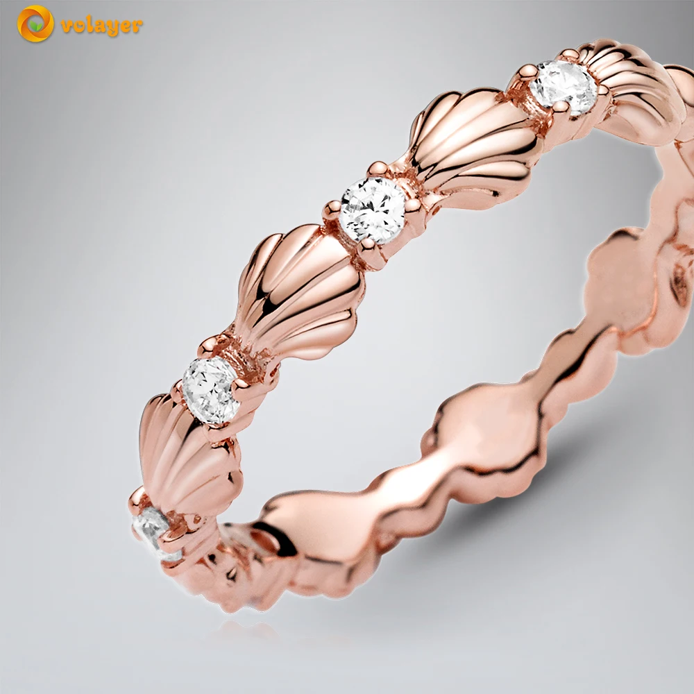 Сверкающие кольца Volayer из серебра 925 пробы, оригинальные женские кольца с ореолом в форме морской ракушки, короны геометрической формы, 925