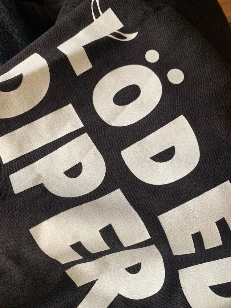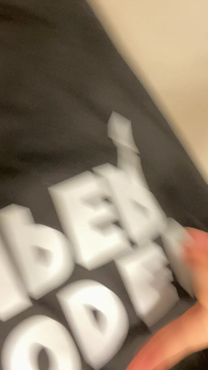 this came in about two weeks, the words were a bit smaller than it showed in the picture but its okay! there was no weird stench to it or anything, the words are ironed on vinyl i think, and its honestly really good quality! its not too thin either!
