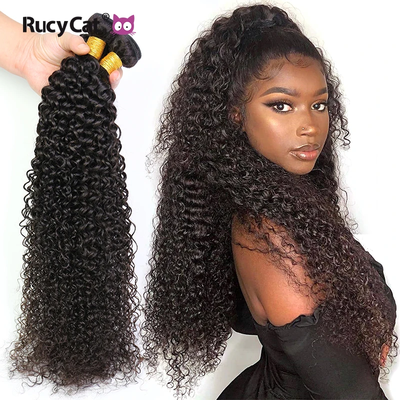 Пряди индийских курчавых кудрявых волос Rucycat с застежкой, пучки 30 дюймов, 100% натуральные волосы без выпадения, человеческие волосы Реми