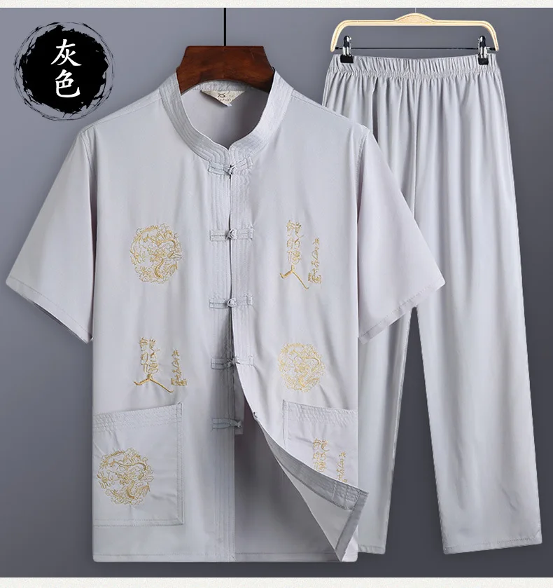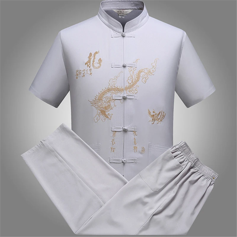 Мужская форма тайцзи костюм кунг-фу Униформа дракона Ву Шу одежда тайчи рубашка с коротким рукавом + брюки одежда Wushu Новинка 2020