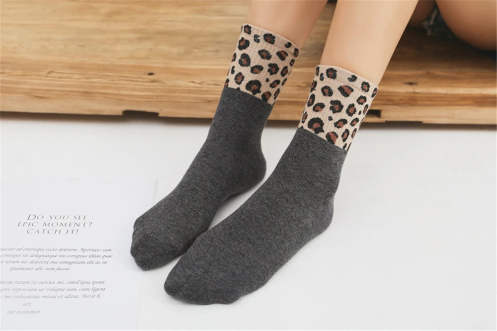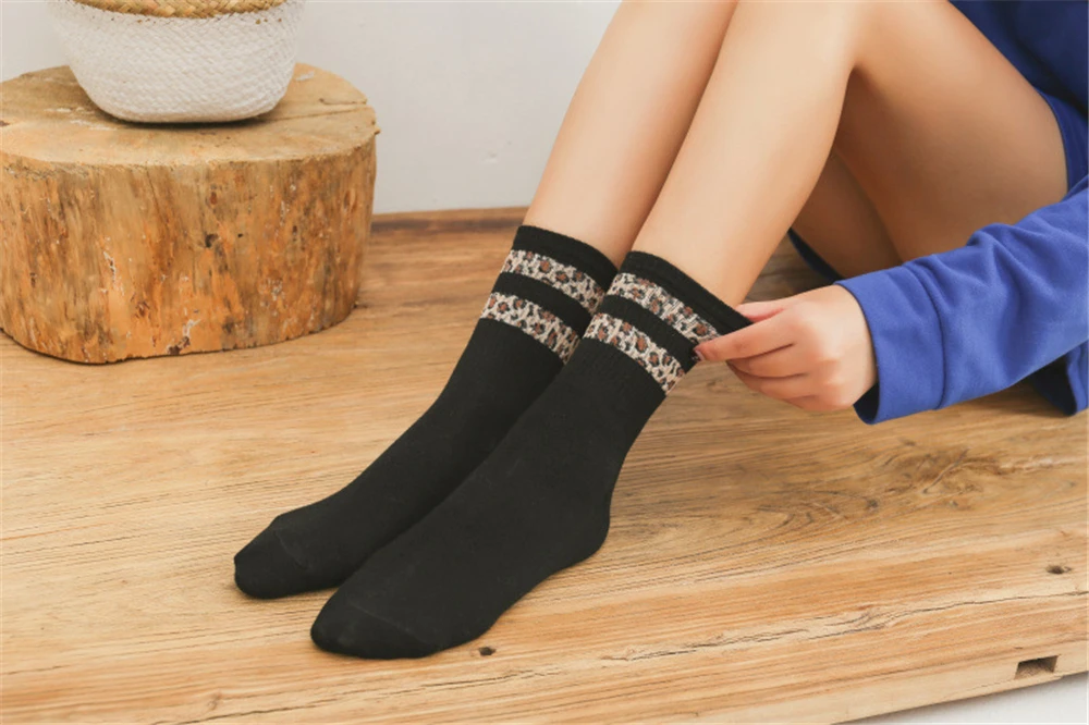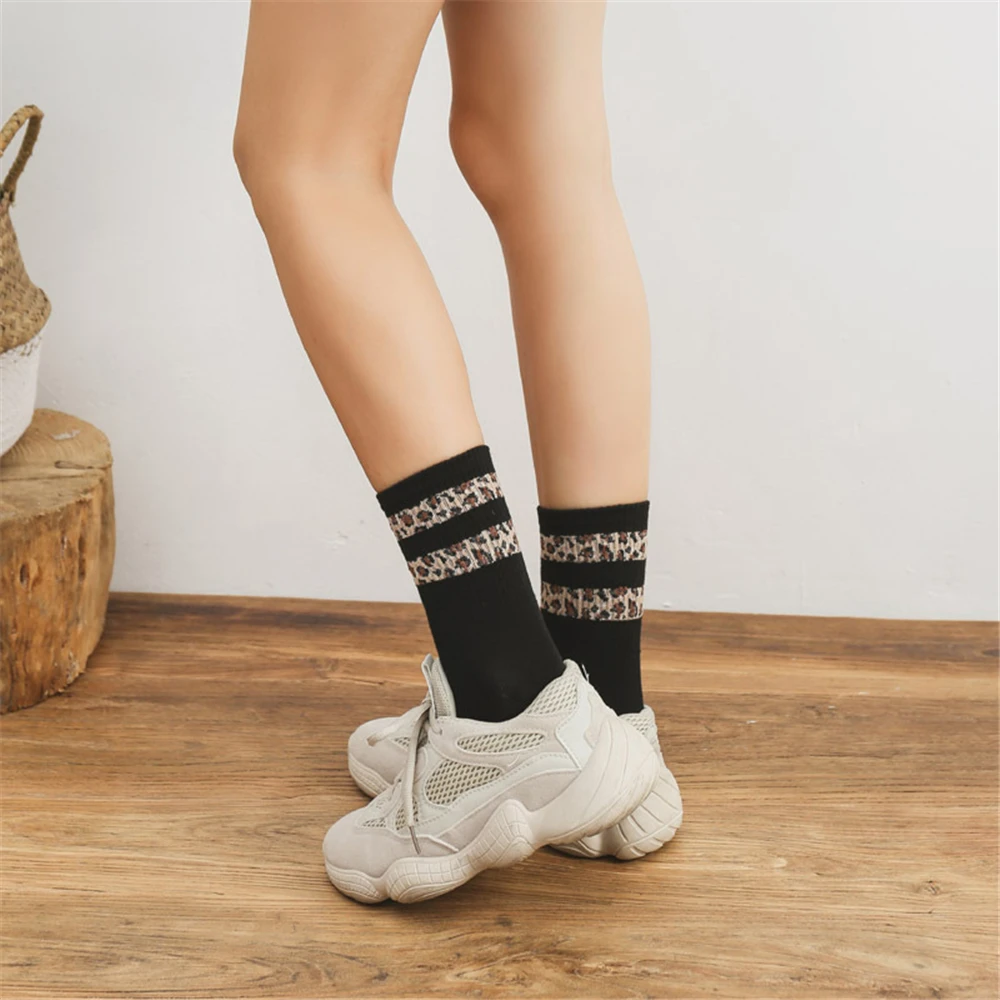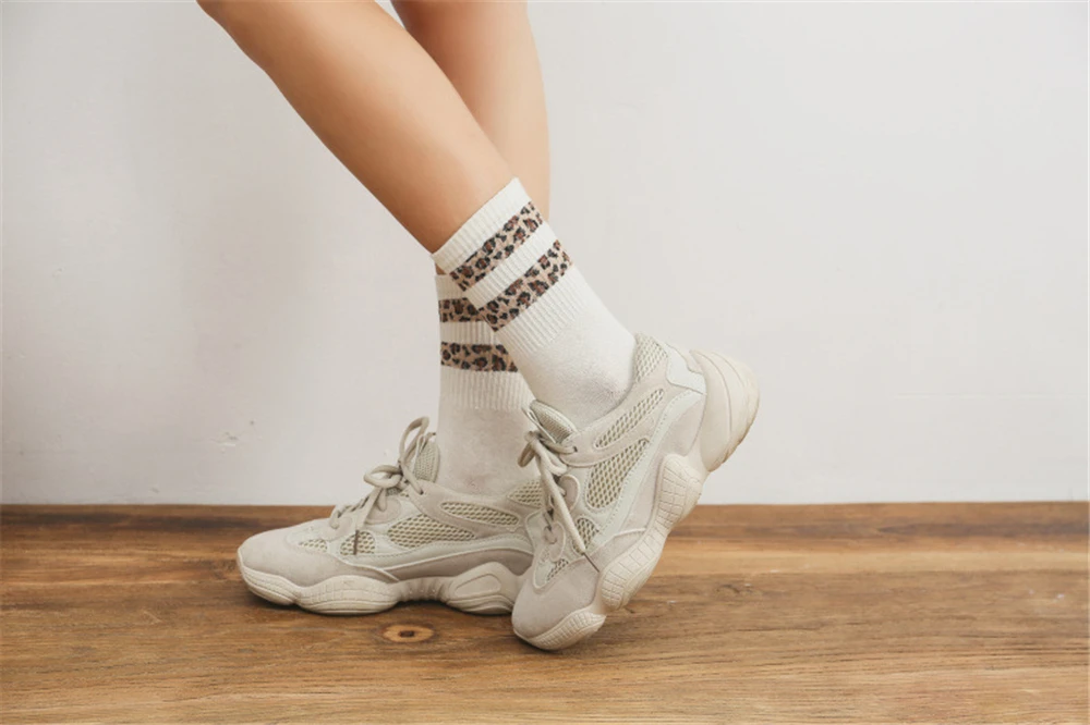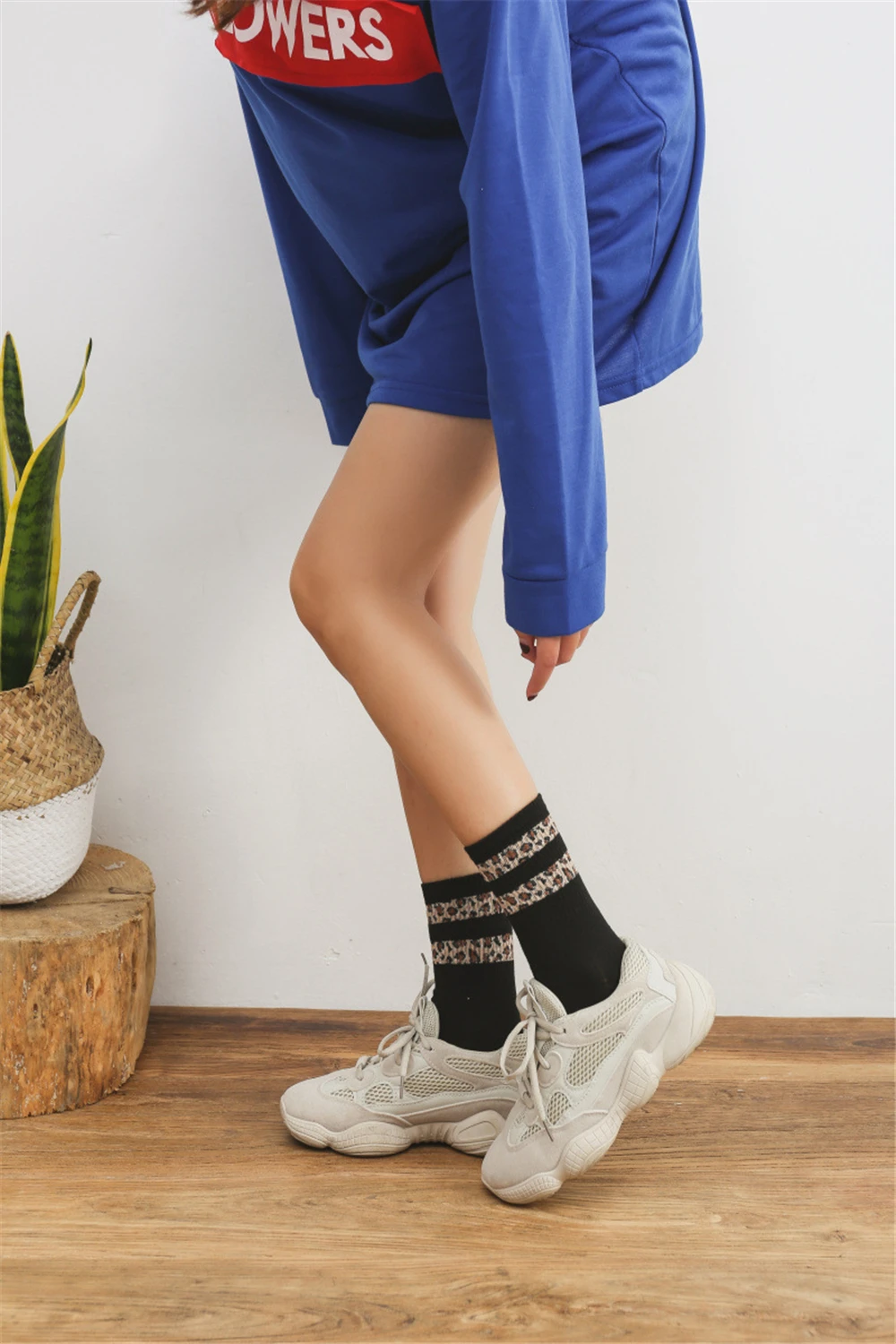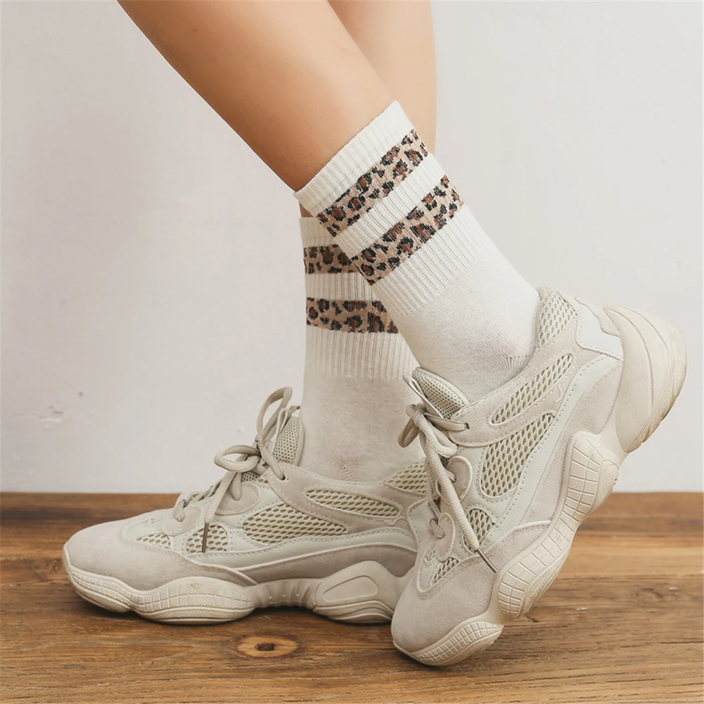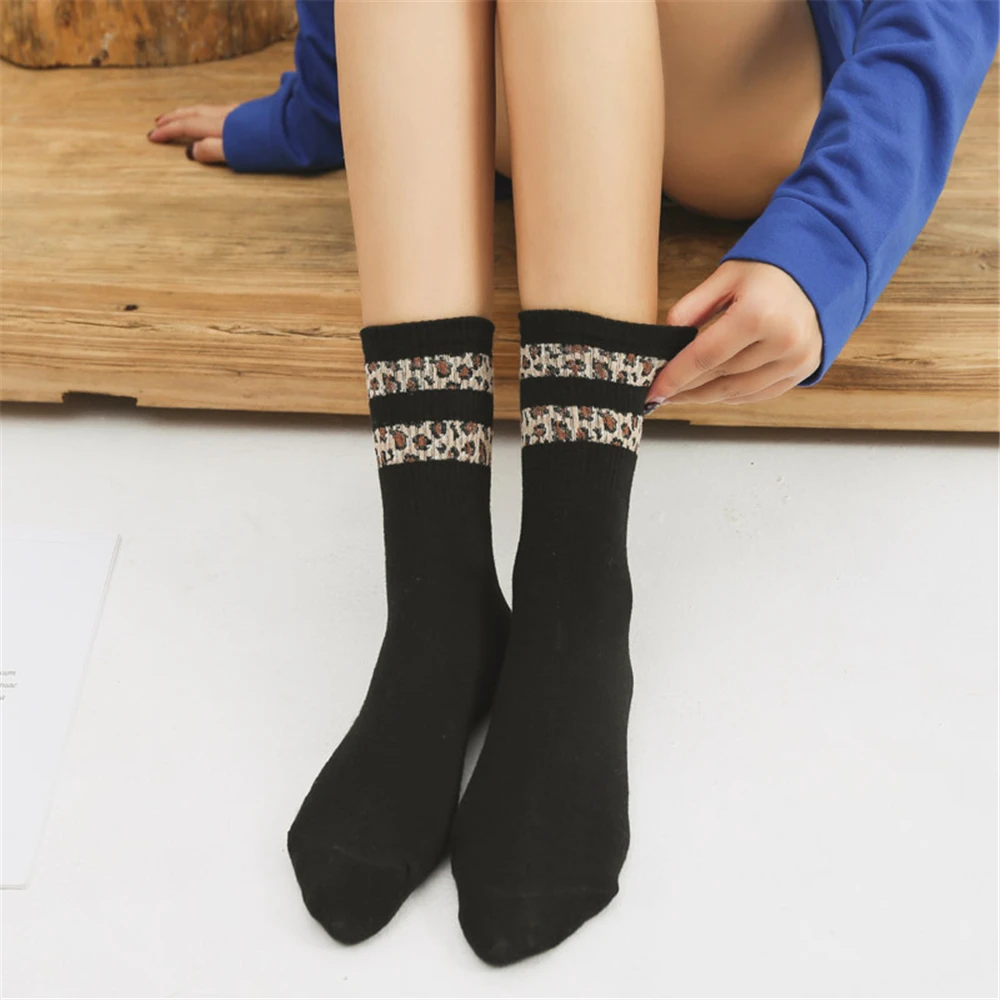 Женские Модные хлопковые носки в стиле ретро на весну и зиму, популярные носки в полоску с леопардовым принтом, классные хипстерские уютные носки в стиле Харадзюку