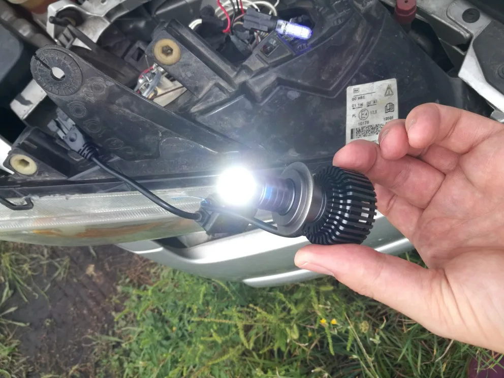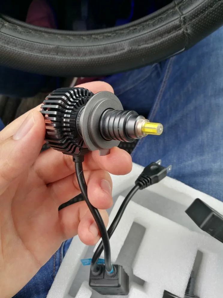 На первый взгляд бомба! Лампа со всеми потрохами в Sportage 3 поместилась под крышку. Вентиляторов не слышно. Световой поток отличный. По сравнению с белыми лампами +50% свет просто шикарный. В деле на дороге, пока, не проверял, но на парковке очень понравилось. При установке пришлось цокольный переходник(кольцо Н7) обратной стороной ставить, не знаю правильно это или нет. Если ставить так, как они изначально установлены на лампах, прижимная дуга Н7 не дает лампу до конца вставить в переходник. В общем, пока впечатление классное. А дальше будет видно. По крайней мере, явно лучше, чем дорогие Koito или IPF/PIAA...