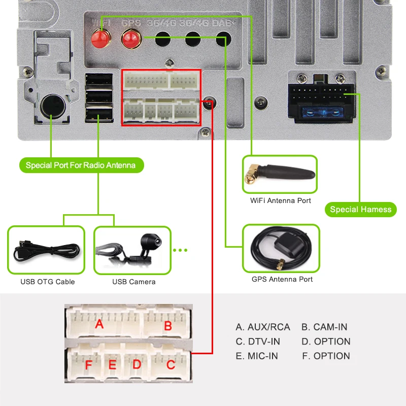 GPS / Bluetooth/Радио/RDS/ВстроенныйWiFi/Зеркальная связь/3G/4G/DSP/Встроенный CarPlay/USB / SWC / AUX IN / Games/8 цветов кнопочный светильник