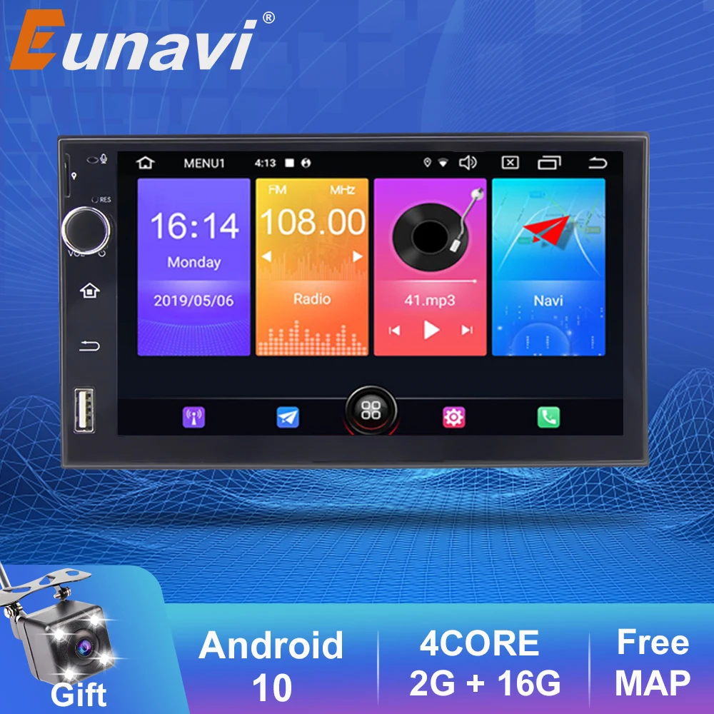 Автомагнитола Eunavi, 2 Din, Android 10, 7 дюймов, HD, универсальный мультимедийный плеер, радио, стерео, аудио, GPS-навигация, авто, DSP, без DVD