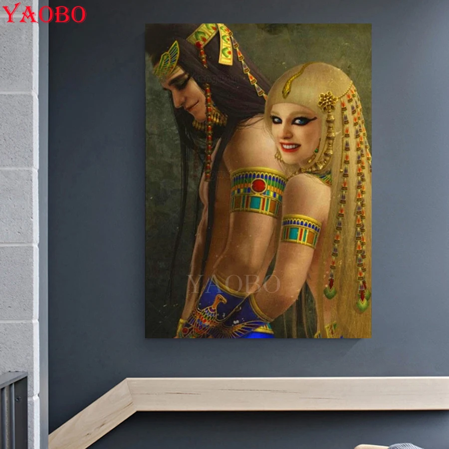 5D алмазная живопись сделай сам, египетская пара, вышивка крестиком, полноразмернаякруглая Алмазная вышивка, картина король и королева Стразы