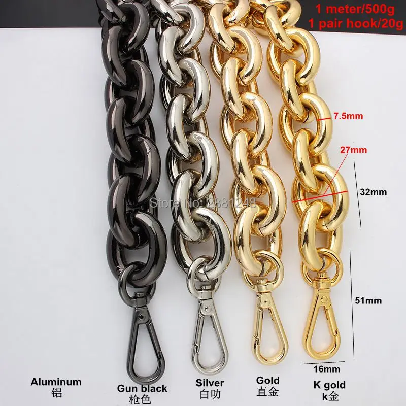 Алюминиевая цепочка и крючок толщиной 27 мм, светильник ремешок для сумок, ручки для сумок, легко сочетающиеся аксессуары, ремешки для сумок