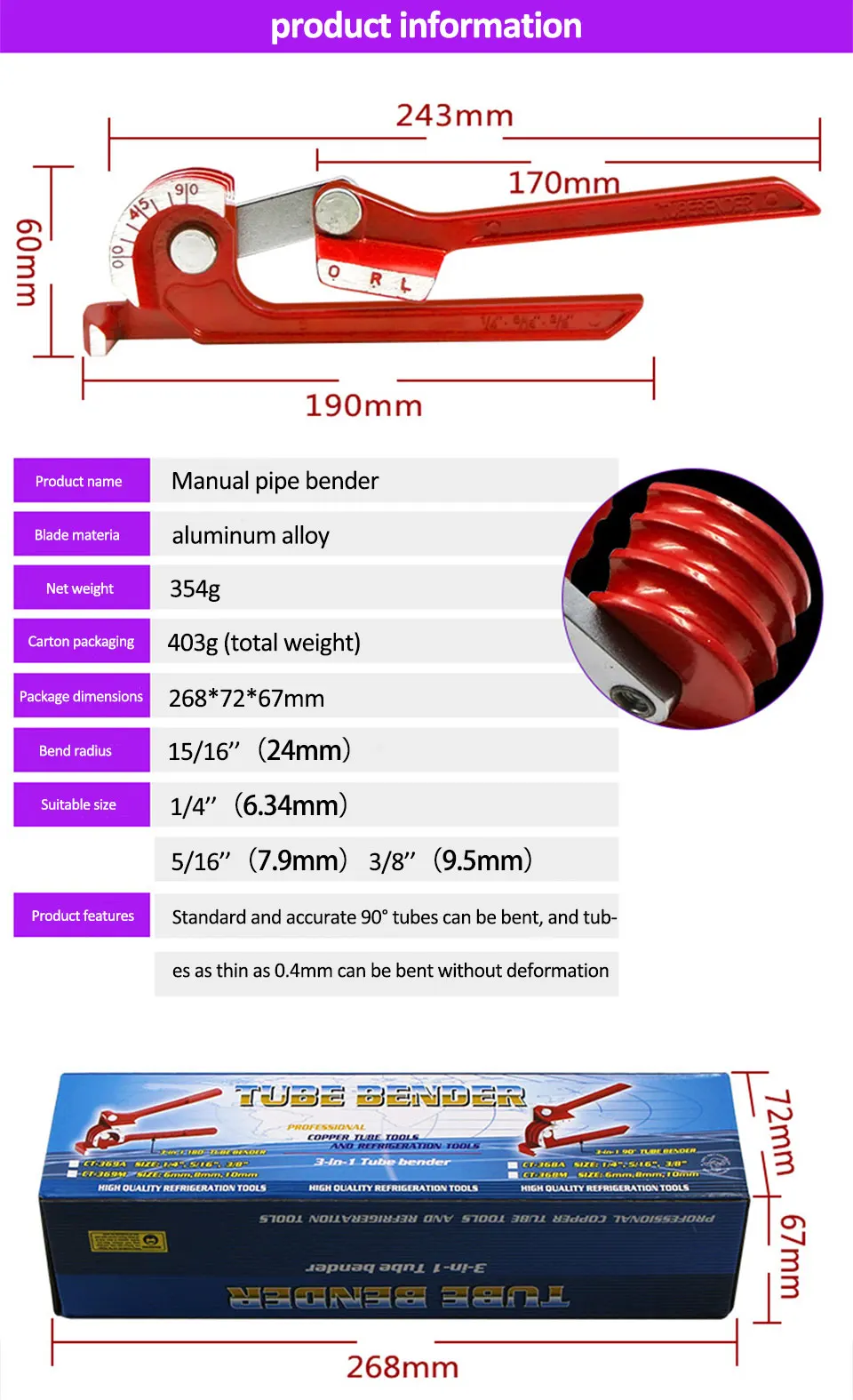 1 шт. 3-в-1 ручной станок для гибки трубчатых заготовок Медь трубка...