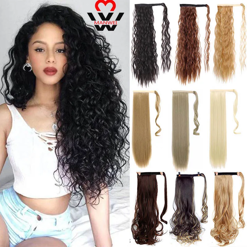 Манвэй 24 "завиток конский хвост обертывание вокруг клип в конский хвост наращивание волос термостойкие синтетические натуральные кудрявые конский хвост поддельные волосы