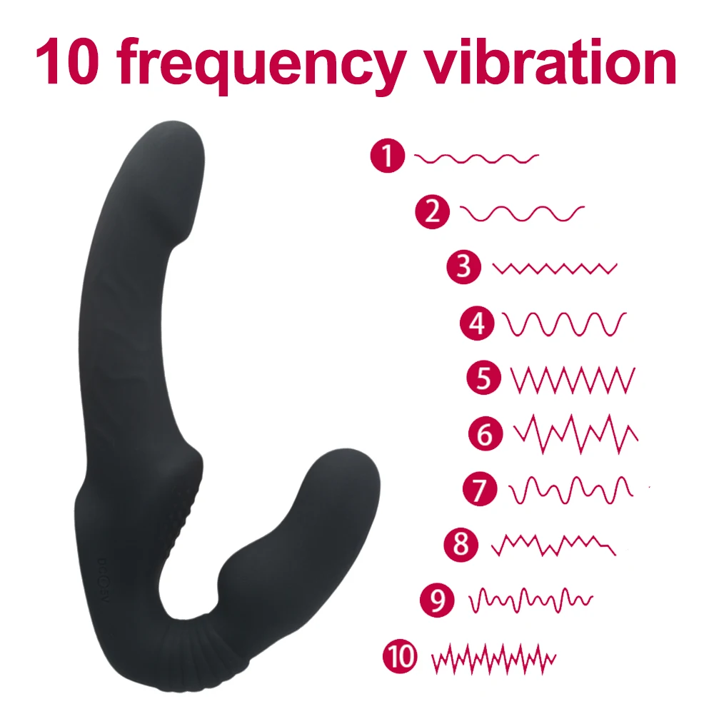 10 скоростей без бретелек вибратор Strapon женский Двойной вибрацио...