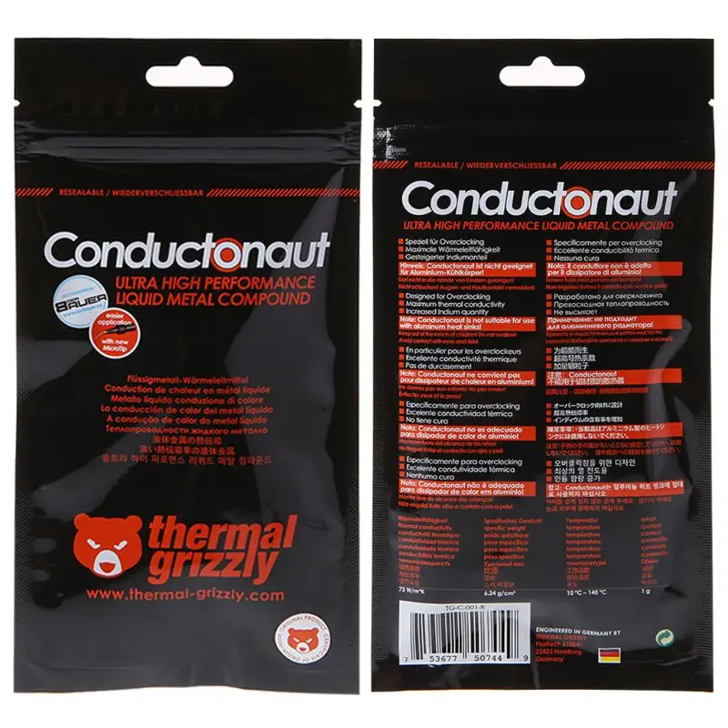 Описание на 100% абсолютно новый и высокое качество. Особенности: термальный гризли кондуктонат-жидкое металлическое термосоединение на основе эвтектического сплава. Наша специальная смесь металлов, таких как олово, Галлий и индий, делают кондуктонат excel с очень высокой теплопроводностью и отличной долговременной стабильностью. Обратите внимание: Термопаста для электропроводки не должна использоваться с алюминиевыми радиаторами! Наш термокомпаунд из жидкого металла кондуктонат предназначен для применений, требующих очень высокой эффективности. Кондуктонат рекомендуется опытным пользователям, которые ищут высокопроизводительный продукт с лучшей теплоотдачей, где диапазон температур выше 8 °C. Ультра высокая теплопроводность повышенное содержание Индия легкое применение с синтетической иглой характеристики: бренд: thermal Grizzly Плотность: 6,24 г/см3 Температура применения: 10 °C / + 140 °C теплопроводность: вязкость 73 Вт/мК: 0,0021 пас Содержание: 1 г Количество: 1 шт. Примечание: 1. Переход: 1 см = 10 мм = 0,39 дюйма 2. Замеры сделаны вручную, поэтому возможны отклонения на 0-1 см. Пожалуйста, убедитесь, что вы не возражаете, прежде чем делать ставку. 3. Из-за различий между различными мониторами изображение может не отражать фактический цвет изделия. Спасибо! Посылка входит: 1 термопроводник Grizzly (демонстрация других аксессуаров на картинке не входит в комплект)