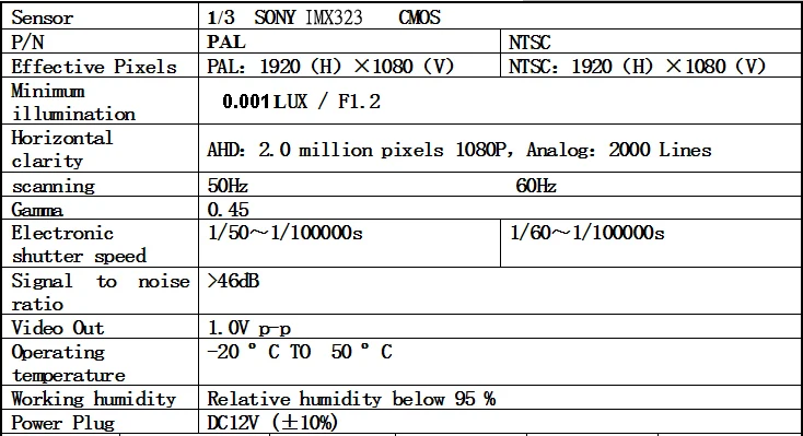 Примечание:1. Эта камера 1080P AHD должна работать с AHD DVR (не аналоговый DVR или 720P AHD DVR)